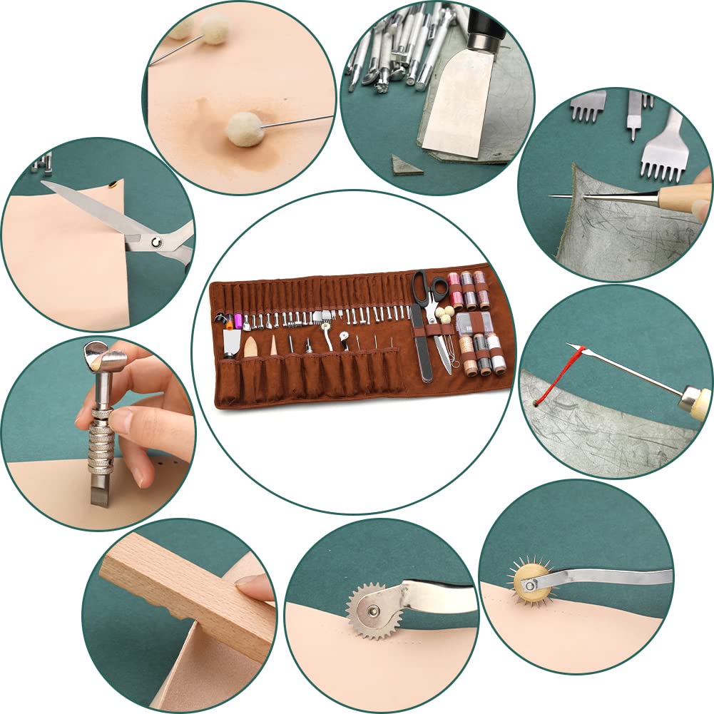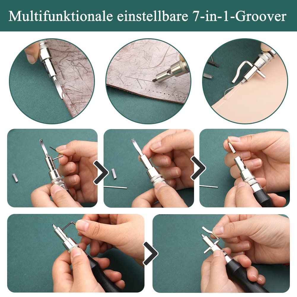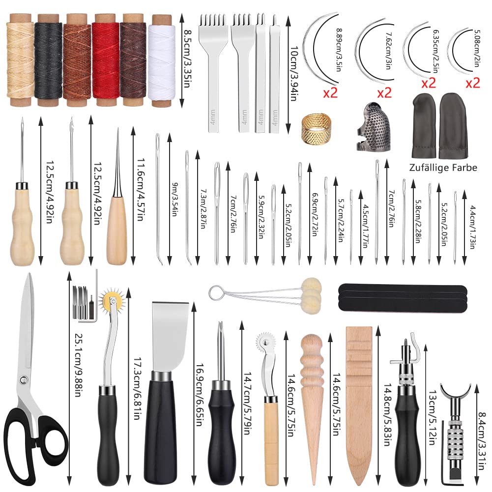- Umfassendes Näh-Set: Ausgestattet mit Ahlen, Nähstempeln, einem verstellbaren Rillenwerkzeug, Wachsfaden, Fingerhut und einer Auswahl an Ledernadeln, um jedes Nähprojekt professionell umzusetzen.
