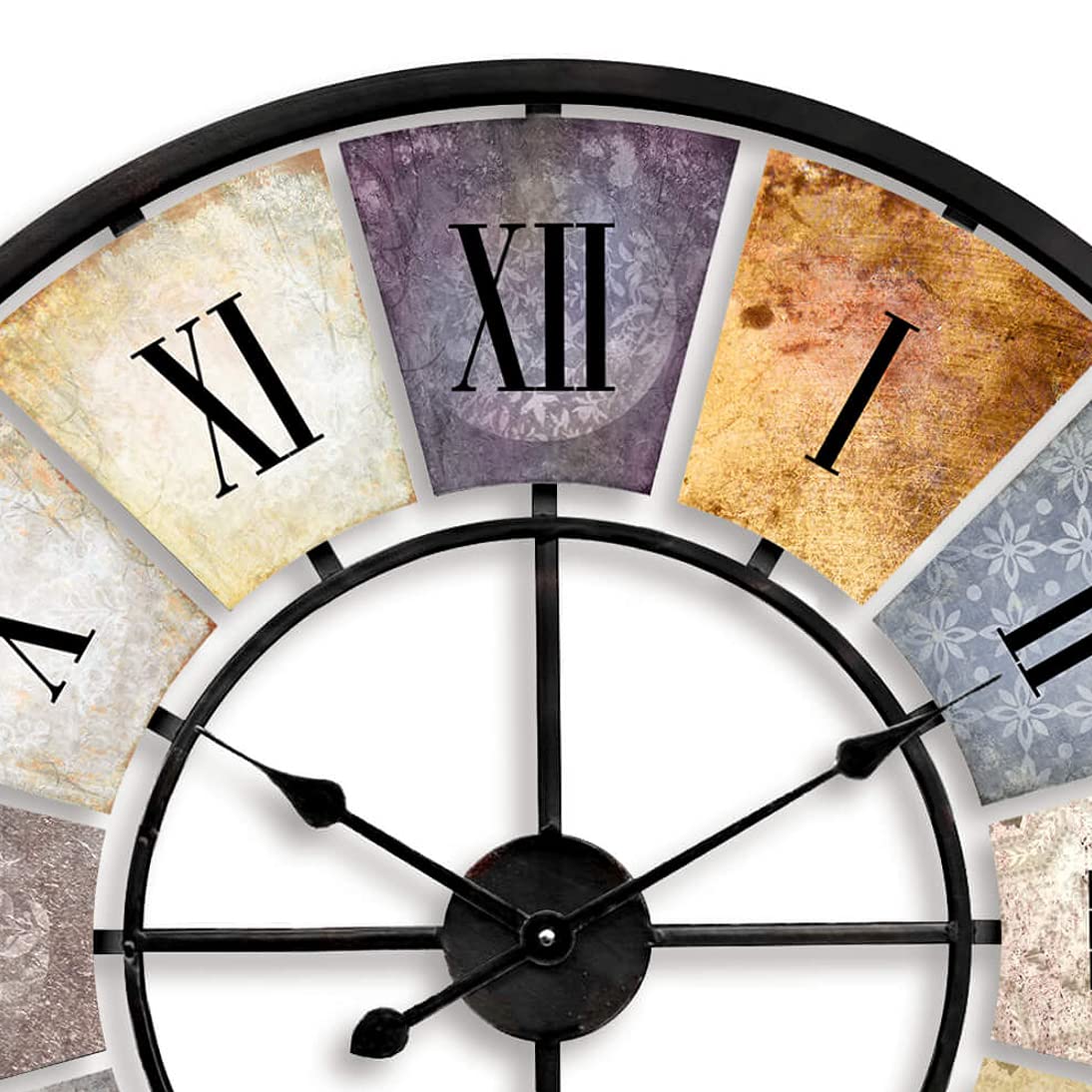 Vintage Wanduhr XXL retro Metall – Shabby Chic Ø 80cm, bunt