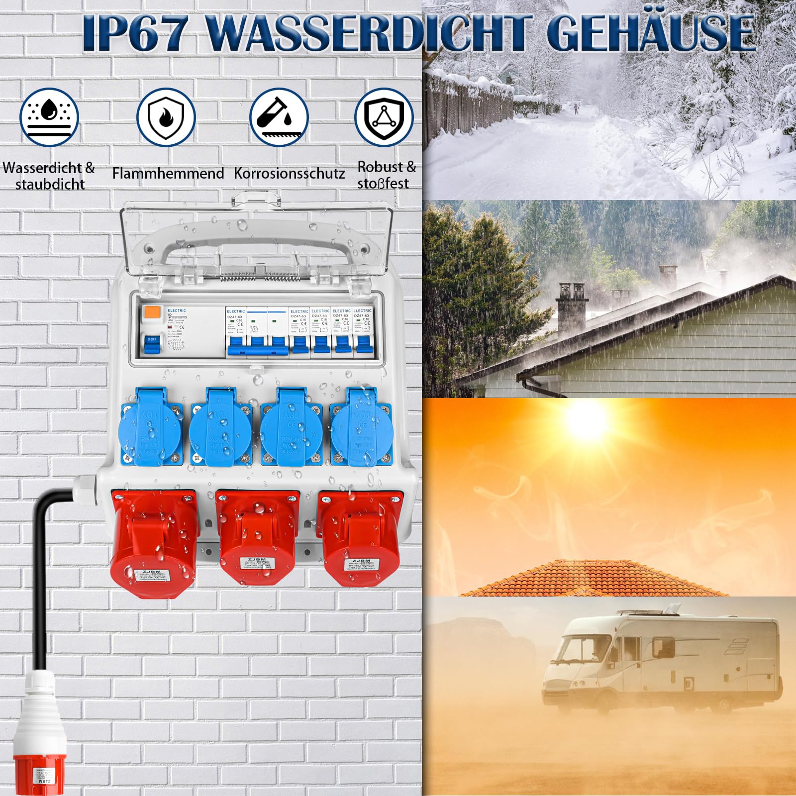 Dank der soliden Bauweise und des hohen IP67-Schutzes ist dieser Stromverteiler für den harten Einsatz konzipiert. Ob auf der Baustelle, in der Industrie, in der Werkstatt oder im Garten – er liefert zuverlässig Energie genau dort, wo sie benötigt wird, und widersteht dabei problemlos Feuchtigkeit und Staub.