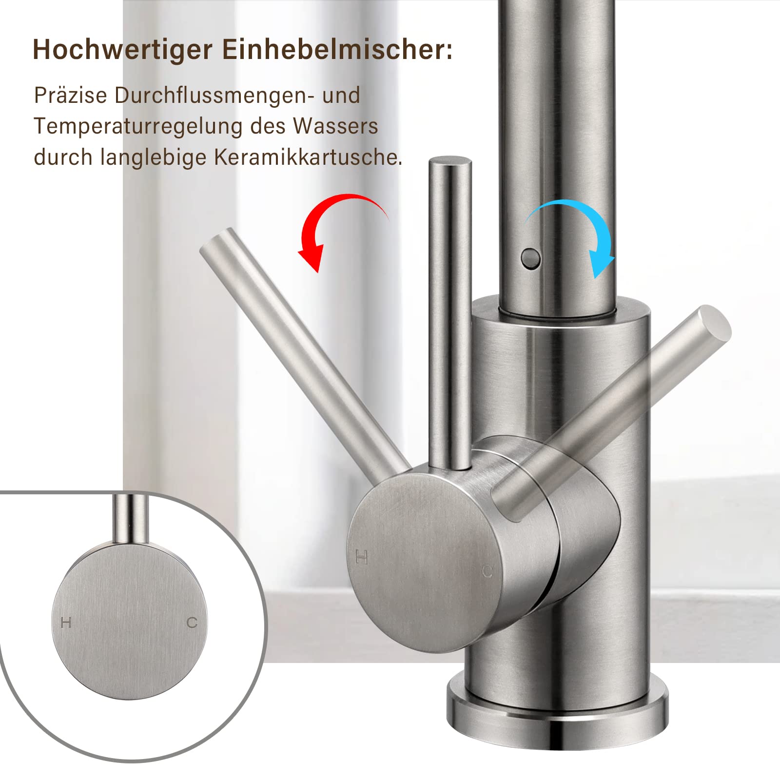 - Präzise Bedienung: Dank der Qualitäts-Keramikkartusche und des Einhebelmischers lassen sich Wassermenge und Temperatur stufenlos und exakt regulieren.