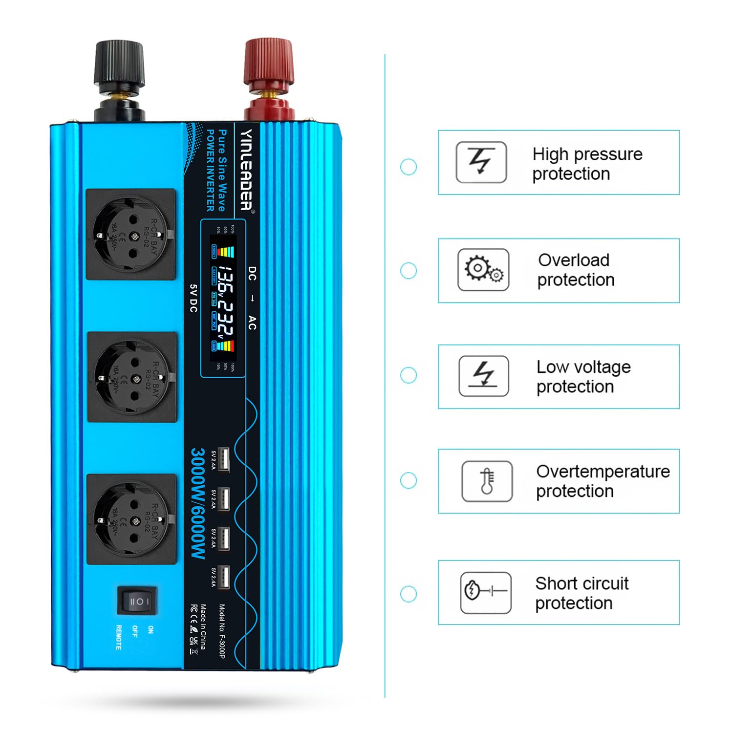 Wechselrichter 3000W Reiner Sinus Spannungswandler – 12V 230V