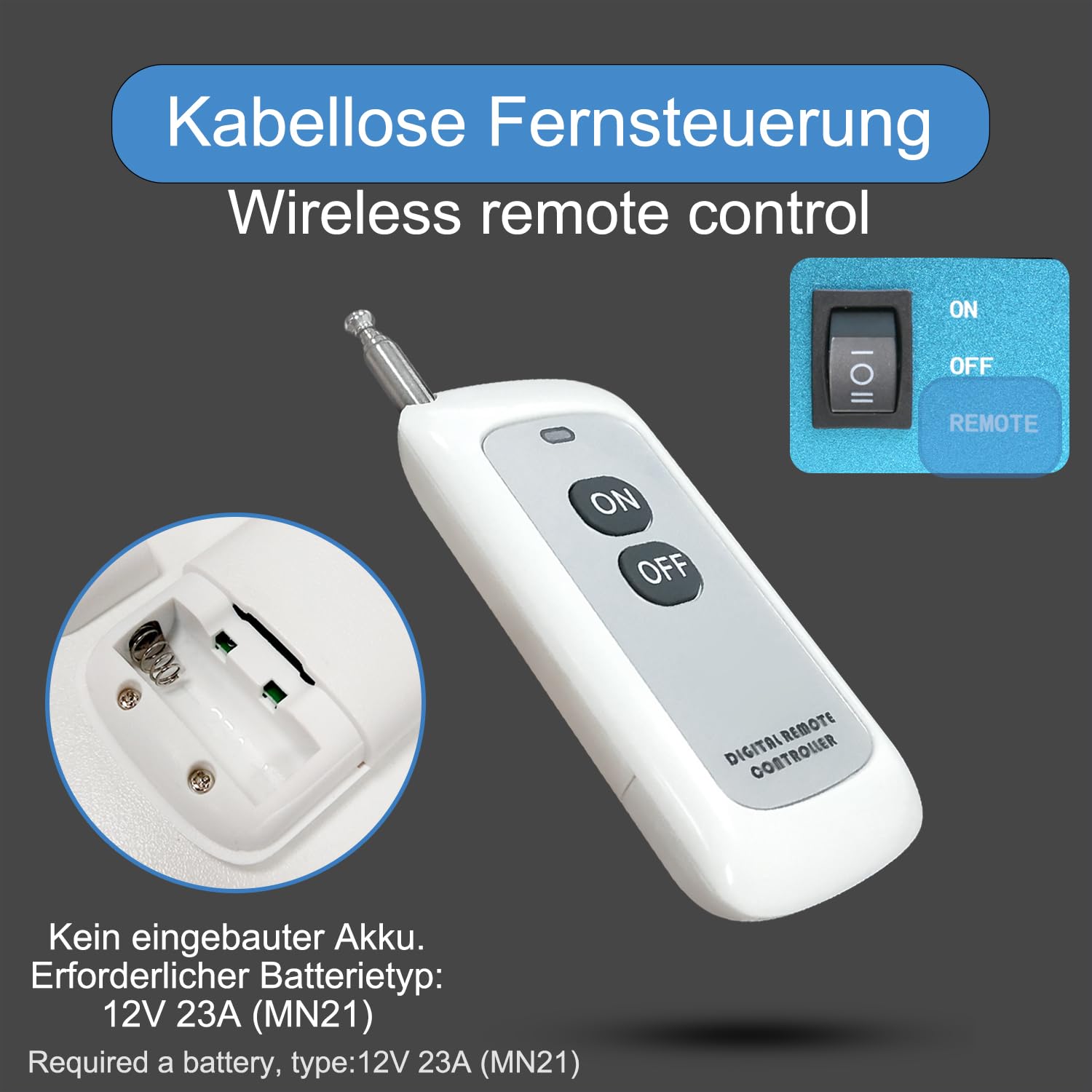 - Hinweis zur Fernbedienung: Benötigt eine MN21-Batterie (nicht im Lieferumfang enthalten).