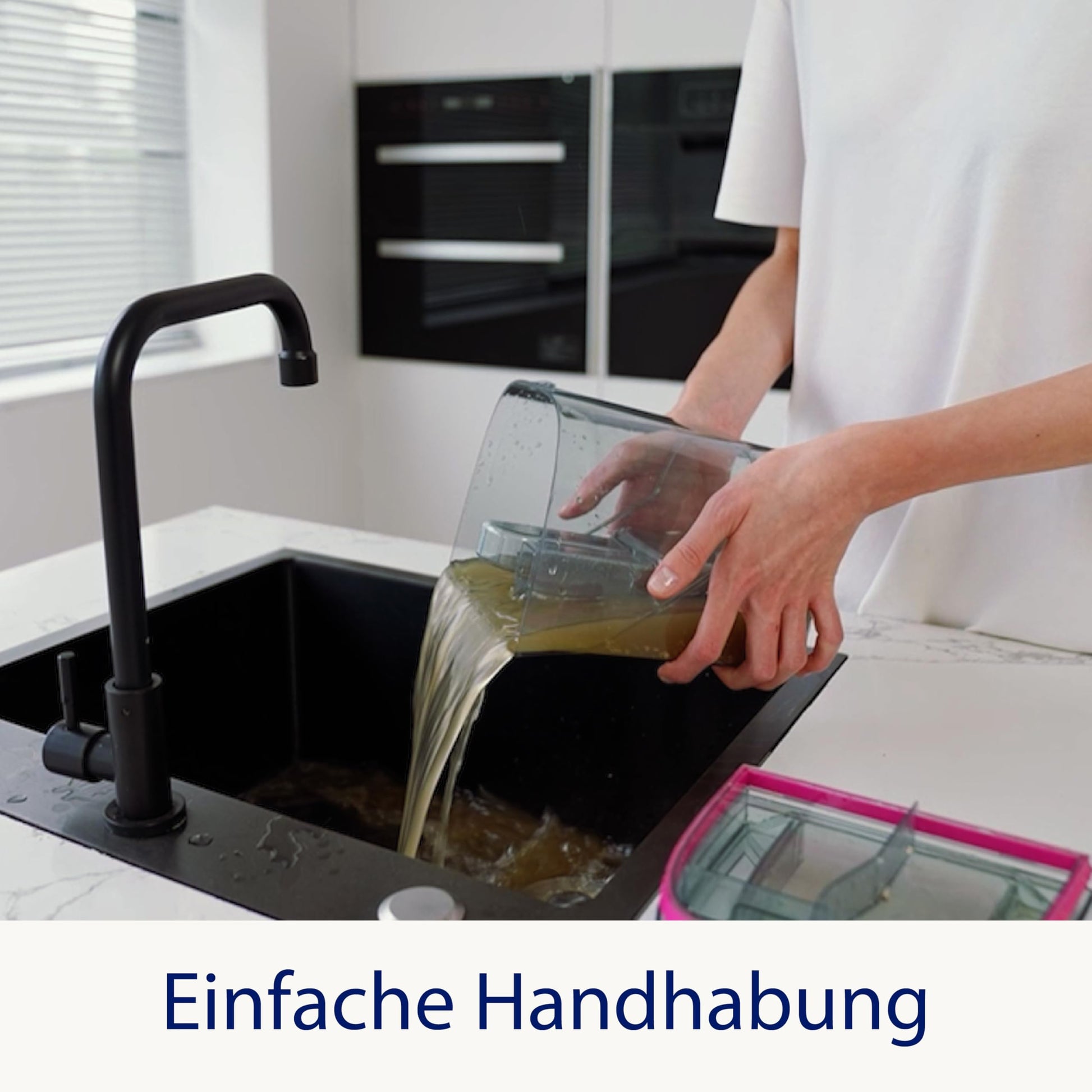 Das intelligente Zwei-Tank-System stellt sicher, dass Sie stets mit sauberem Wasser reinigen, während das Schmutzwasser separat aufgefangen wird. Beide Behälter sind leicht abnehmbar, was das Befüllen und Entleeren stark vereinfacht und für eine hygienische Handhabung sorgt.