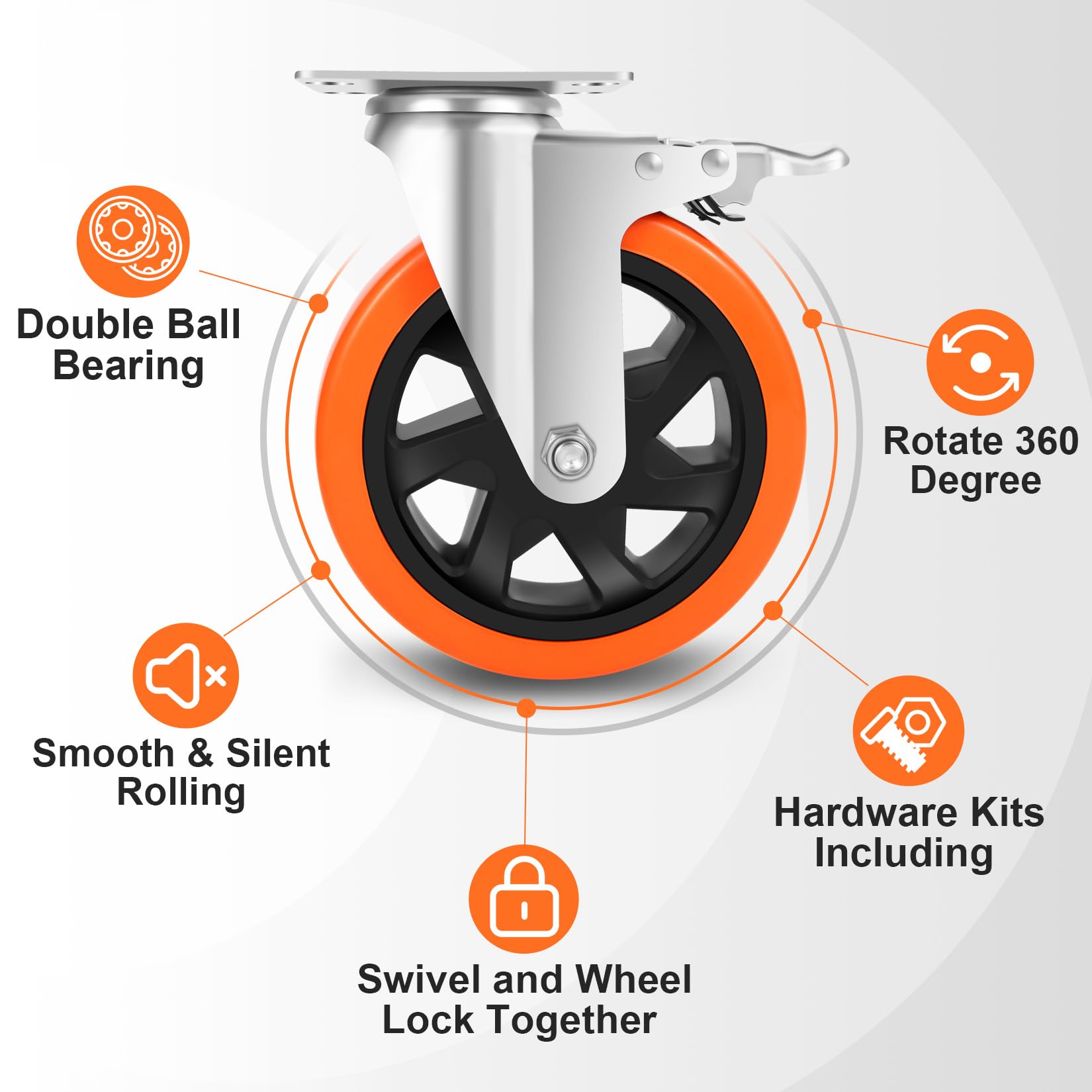 Diese Transportrollen sind extrem vielseitig und perfekt für mobile Werkbänke, Transportwagen, schwere Maschinen, Werkzeugkisten oder grosse Möbelstücke. Dank der reibungsarmen Doppelkugellager lassen sich auch schwere Gegenstände mühelos manövrieren.