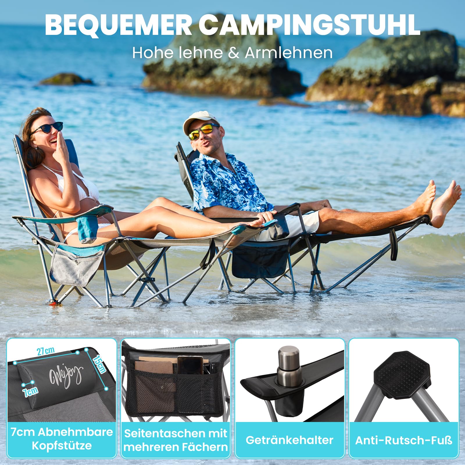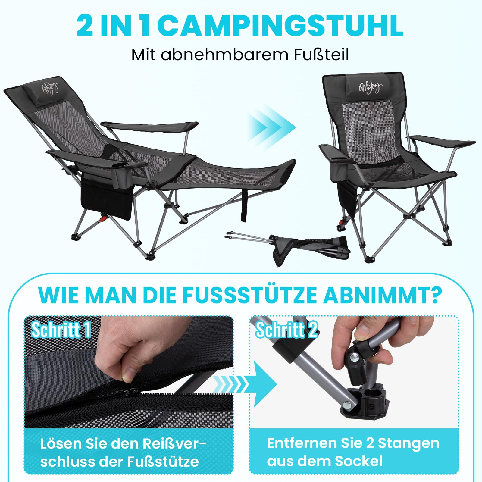 WEJOY 2-in-1 Campingstuhl faltbar - Grau/Schwarz 2er Set