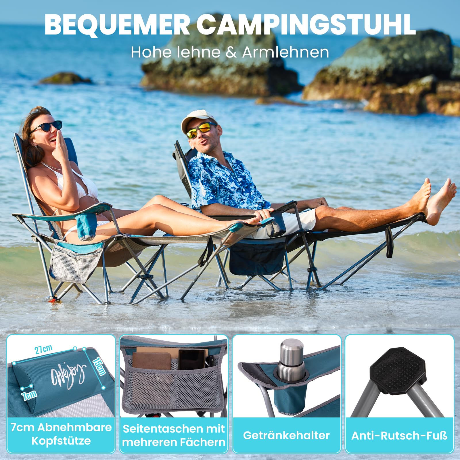 WEJOY 2-in-1 Campingstuhl Relaxliege mit Fussstuetze - Cyan/Grau 2er Set