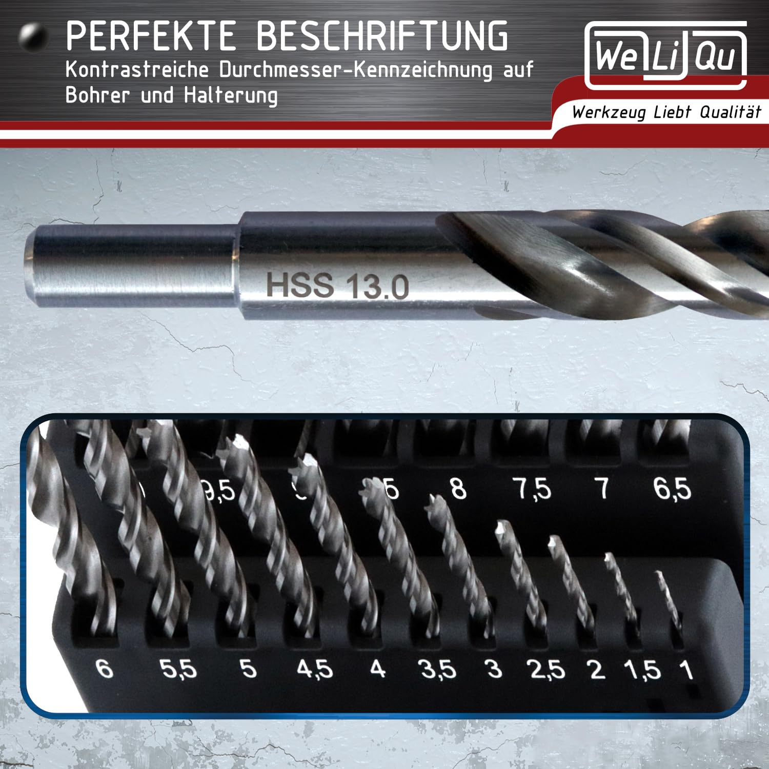 WELIQU 25-tlg. Holzbohrer Set - HSS-G 1-13 mm