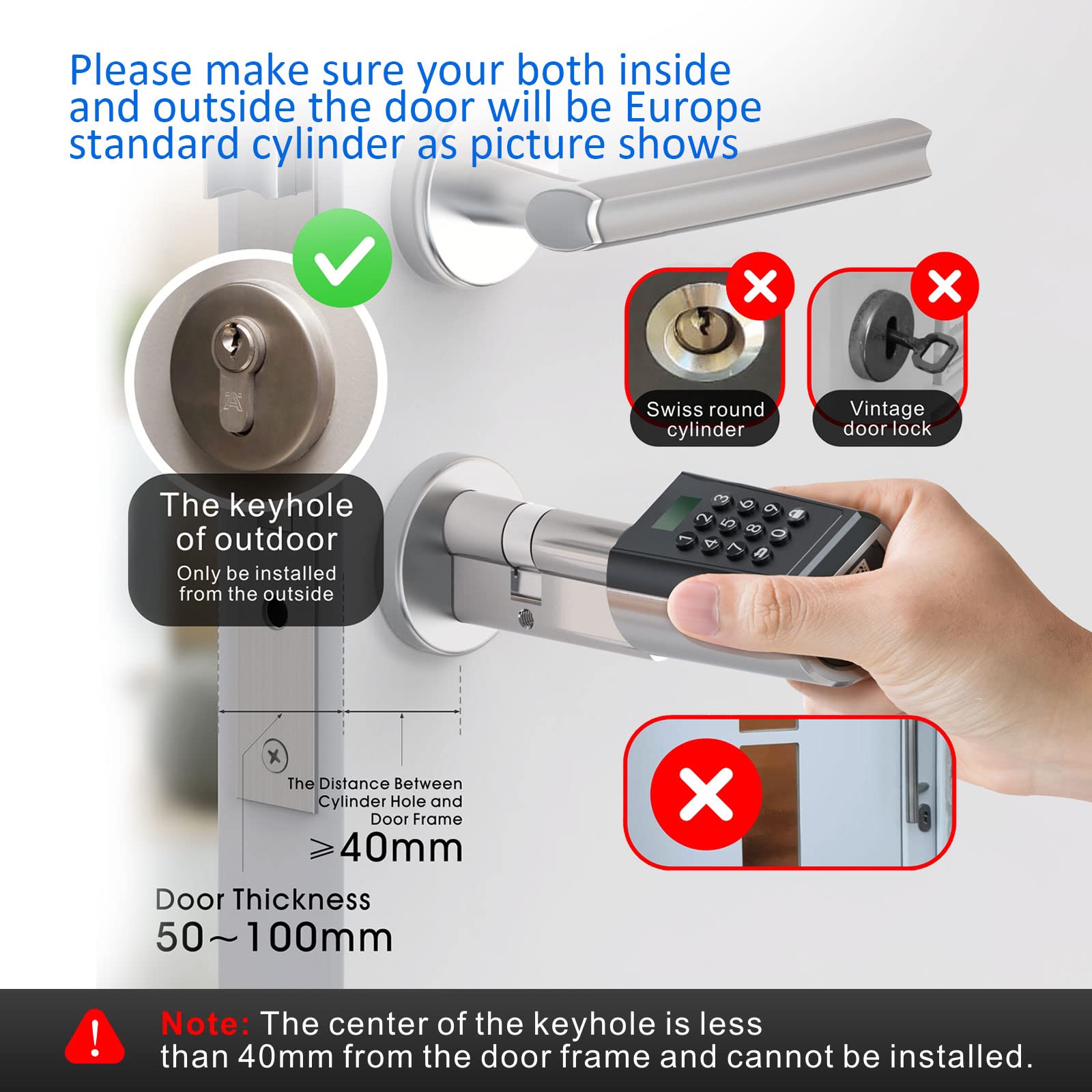 - Hohe Kompatibilität: Geeignet für fast alle Türen nach EU-Standard mit einer Türdicke von 50 mm bis 100 mm.