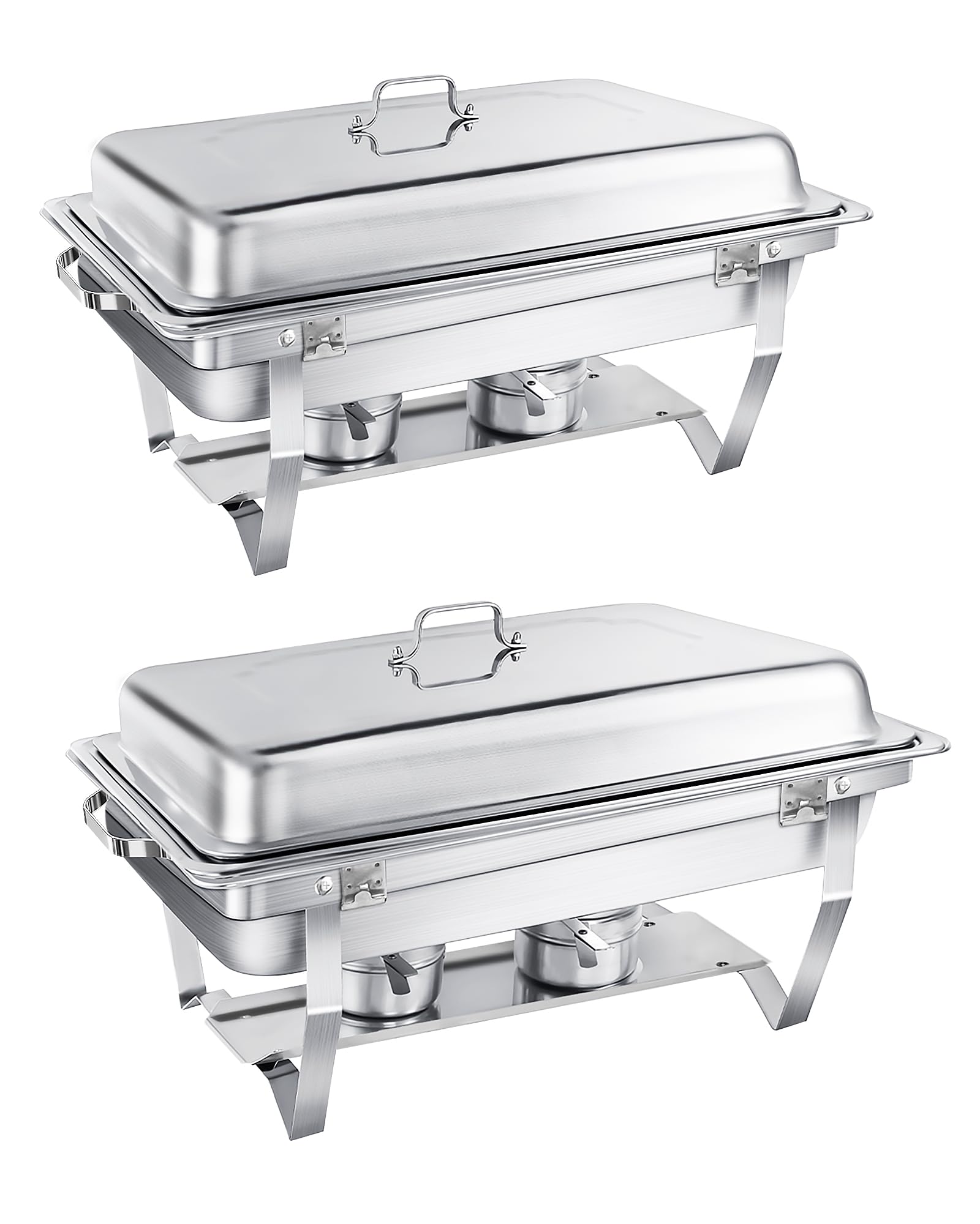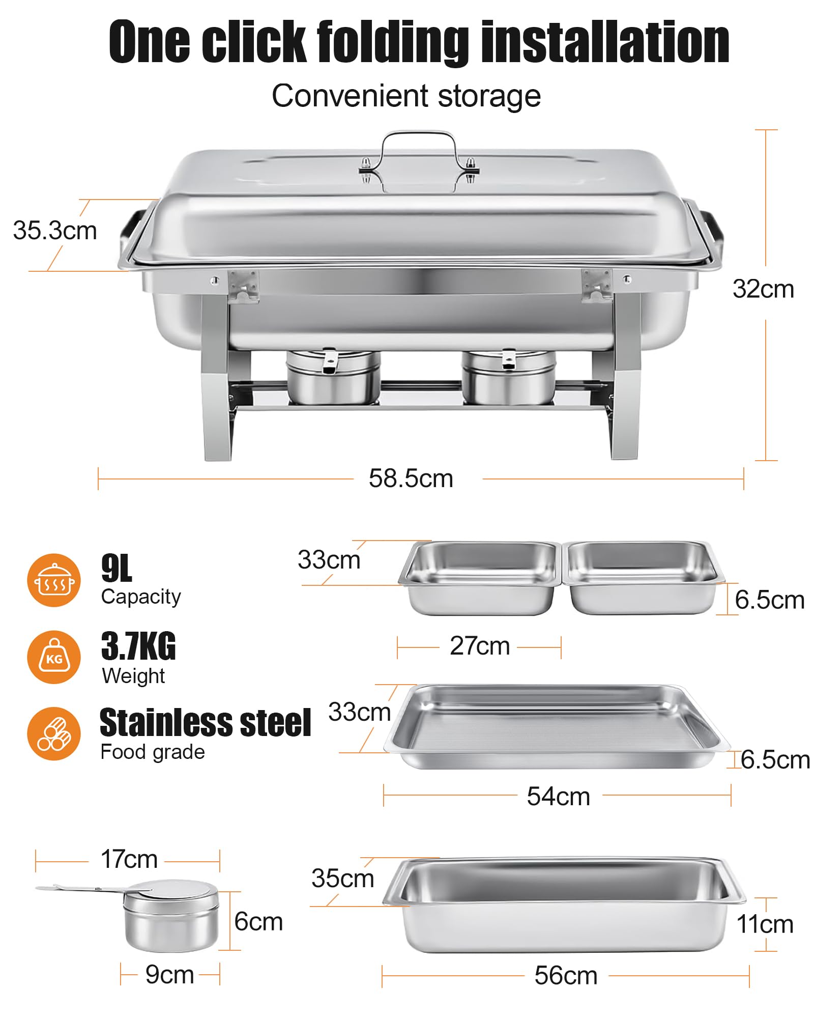 WENMILY Chafing Dish Set Warmhaltebehälter – 2x Quadrat Silber 9L