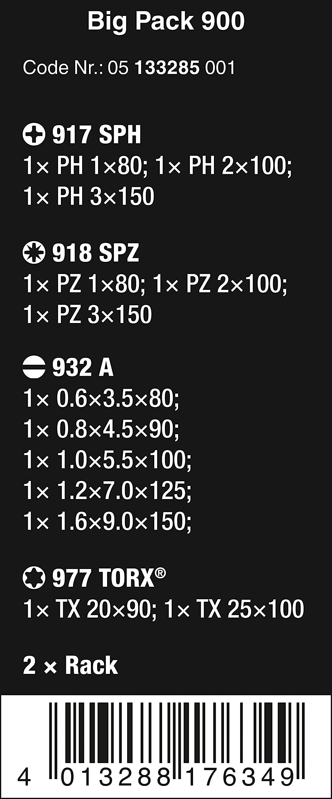 - Schraubmeissel-Set (Produkt 1): Wera Black Point Spitze für exakte Passgenauigkeit und erhöhten Korrosionsschutz.