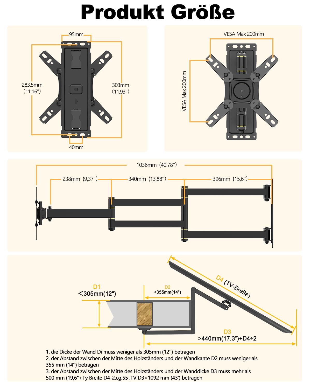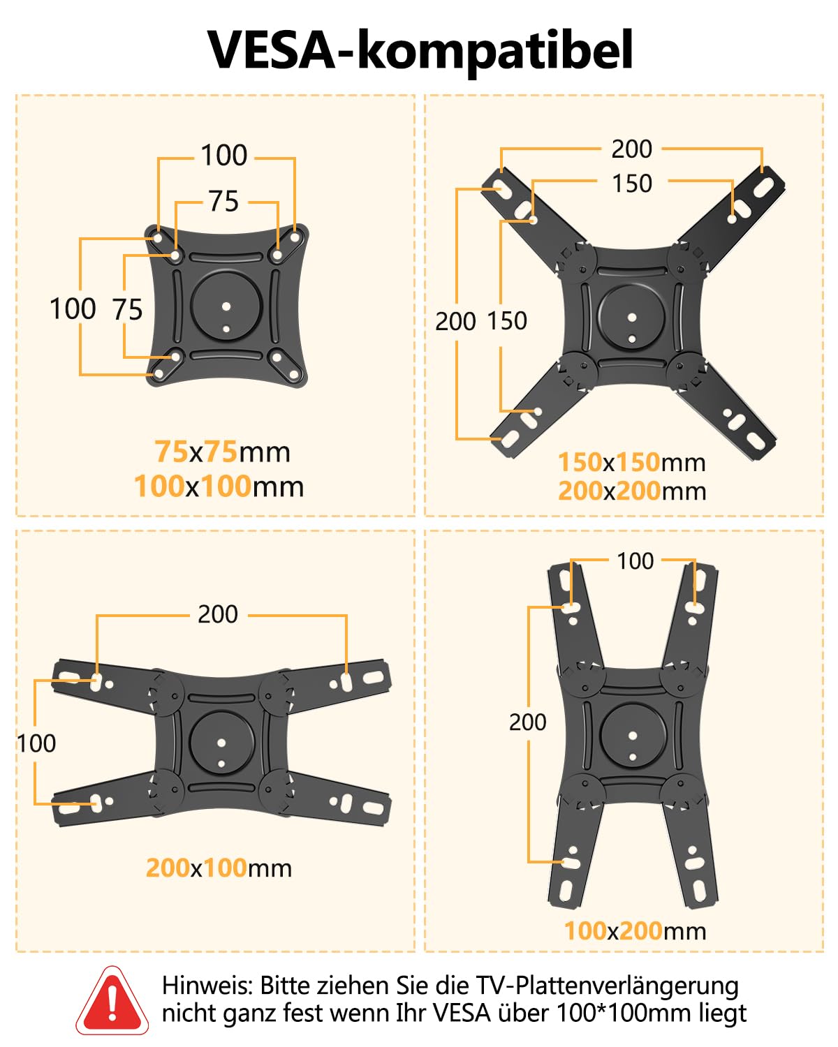 - Breite VESA-Unterstützung: Passt zu VESA-Montagemustern von 75x75 mm bis 200x200 mm.