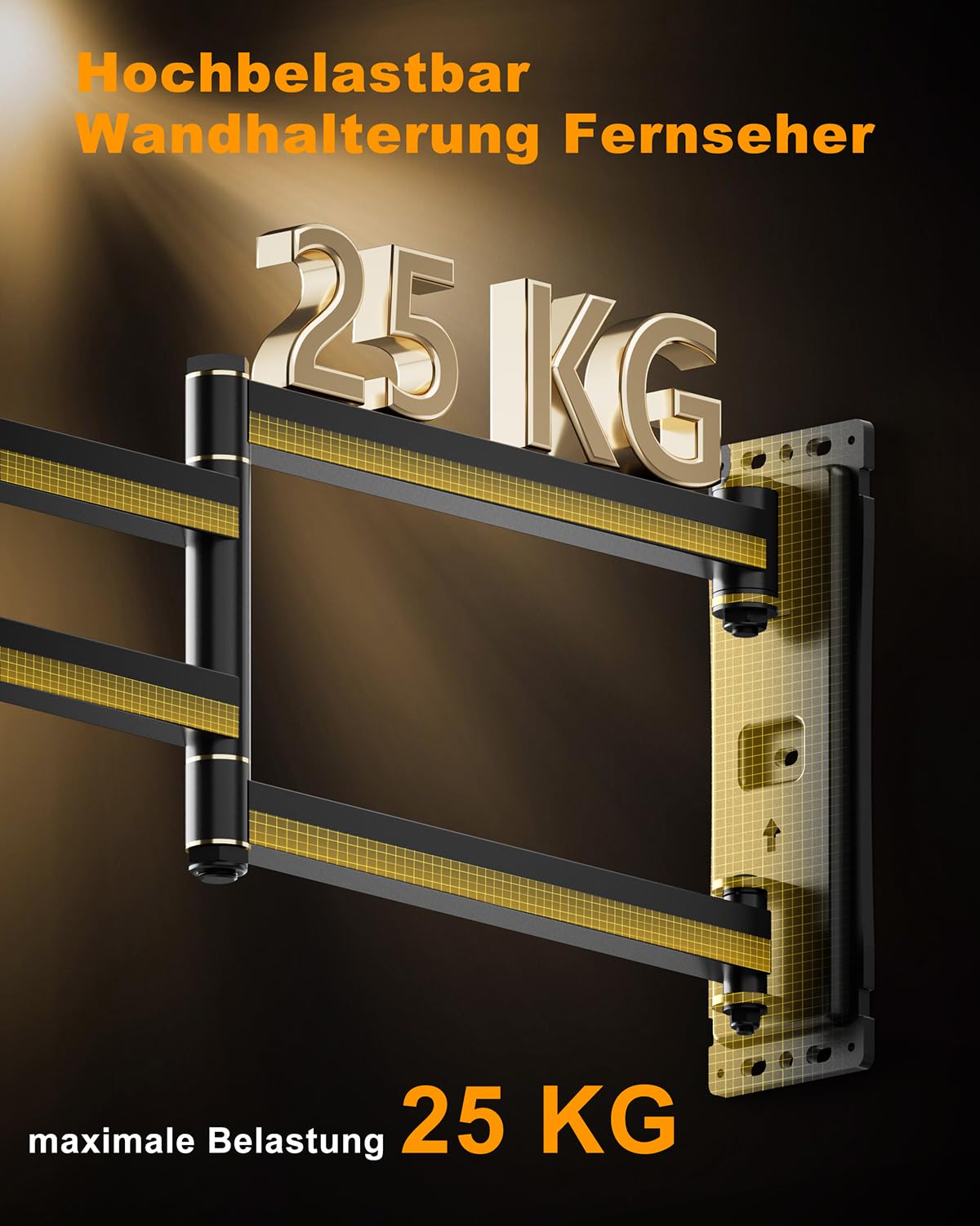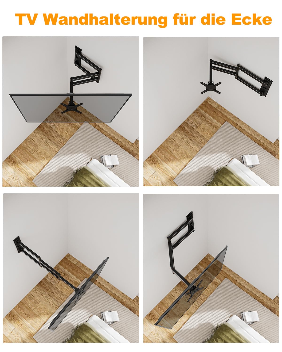 Dank des aussergewöhnlich langen Schwenkarms können Sie Ihren Fernseher mühelos um Ecken herum positionieren oder von einem angrenzenden Raum aus betrachten. Die Halterung ist somit ideal für verwinkelte Wohnbereiche oder offene Raumkonzepte. Ziehen Sie den Arm bei Nichtgebrauch einfach zurück, um wertvollen Platz zu sparen.