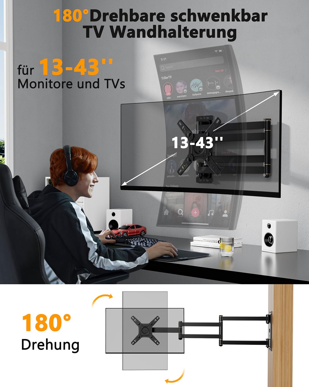 - Universelle Kompatibilität: Geeignet für die meisten Flach- und Curved-Bildschirme von 13 bis 43 Zoll mit einem Gewicht von bis zu 25 kg.
