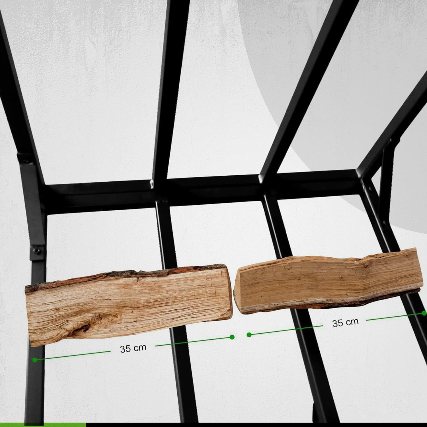 Die hochwertige Stahlkonstruktion mit Pulverbeschichtung ist nicht nur äusserst langlebig, sondern auch wetterfest. Sie schützt das gelagerte Holz zuverlässig vor Bodenfeuchtigkeit und sorgt für einen sicheren Halt, selbst bei voller Beladung.
