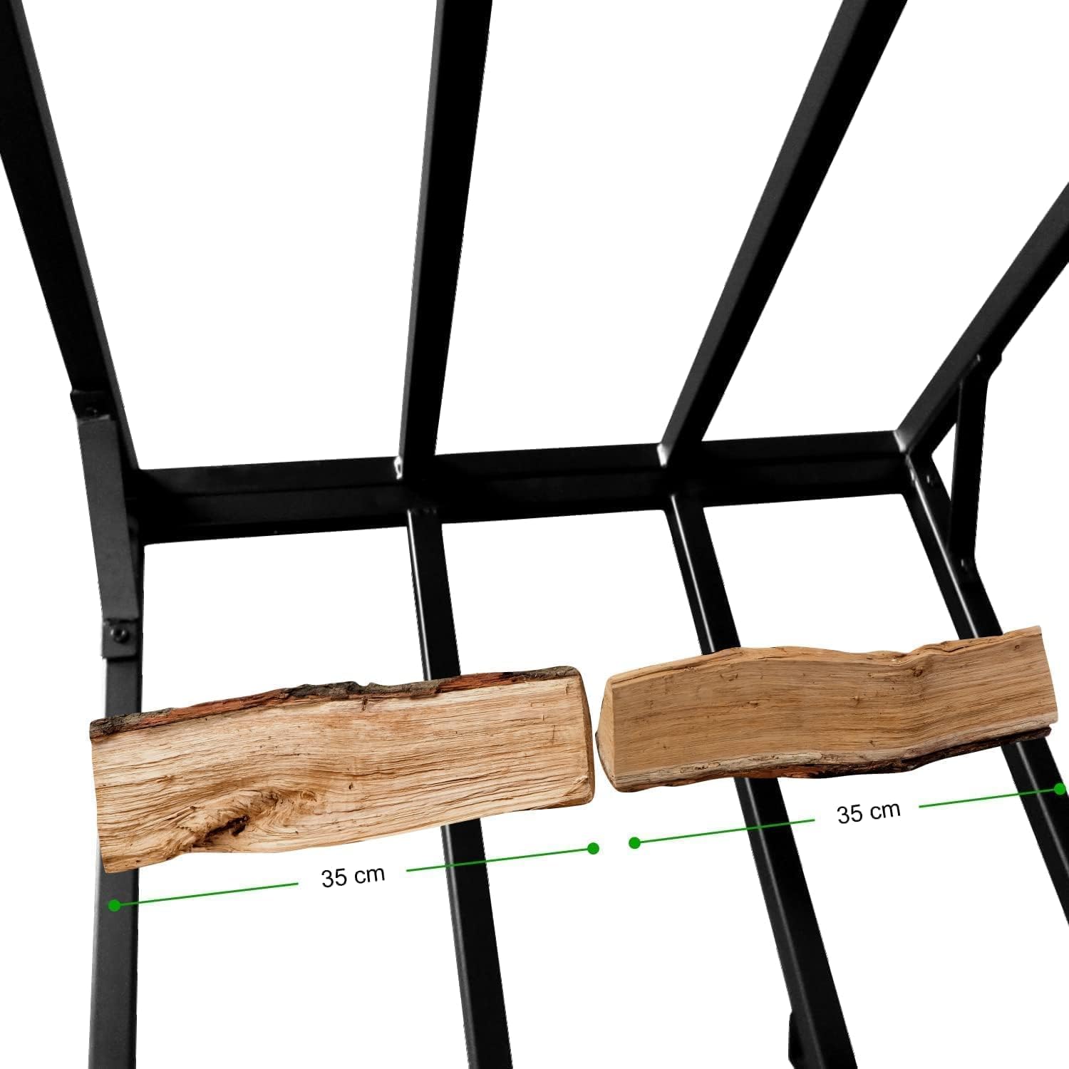 Das Regal hat ein grosses Fassungsvermögen und bietet Platz für bis zu 2,3 Kubikmeter (m³) Brennholz, was 3,3 Schüttraummeter (SRM) oder ca. 3.000 kg trockenem Holz entspricht. Damit sind Sie bestens für die kalte Jahreszeit gerüstet.