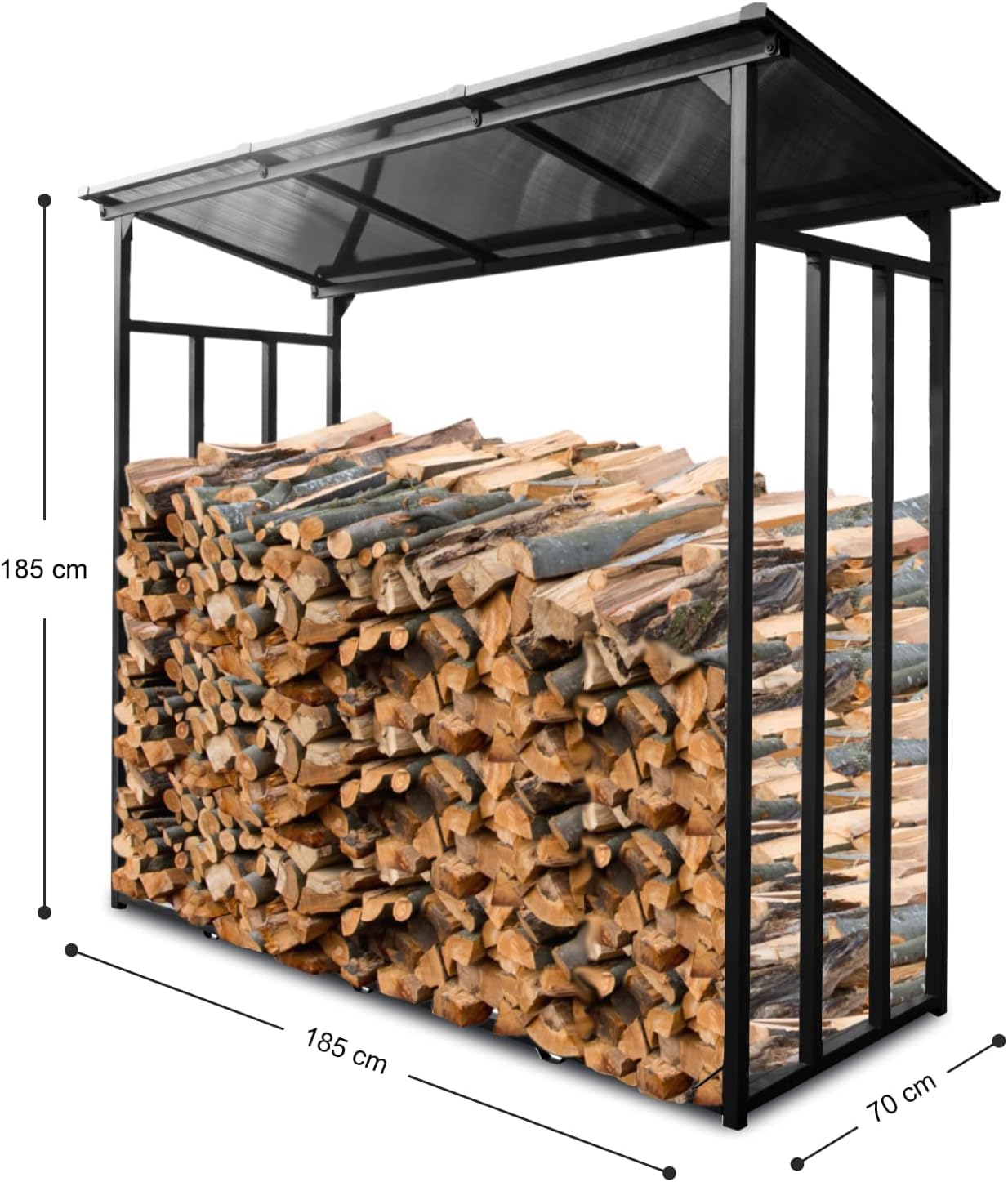 WIELS Metall Kaminholzregal Aussen 185x70x185cm - Mit Wetterschutz