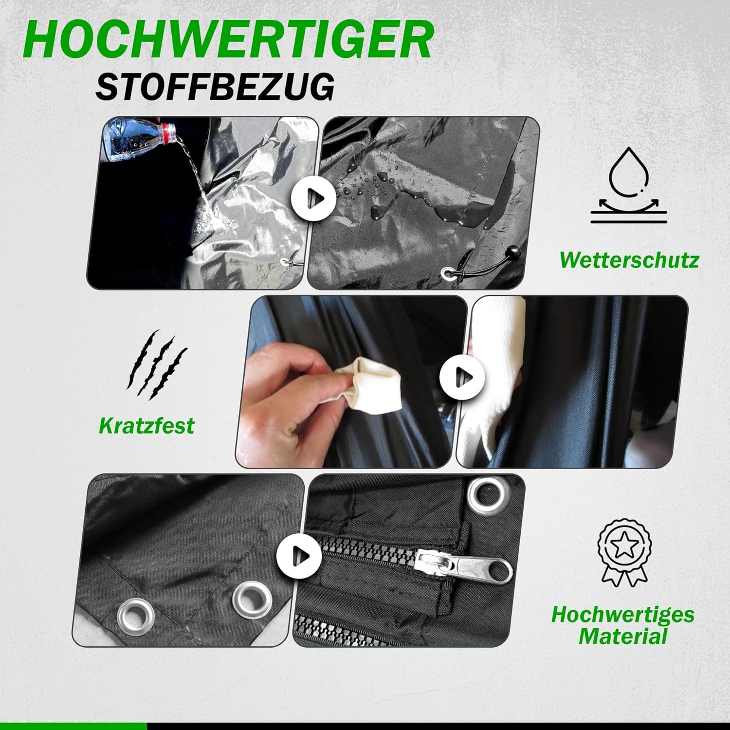 - Inklusive Wetterschutz: Zum Lieferumfang gehören zwei passgenaue Schutzwände mit 22 Ösen und einem praktischen Reissverschluss für zusätzlichen Schutz von vorne und hinten.