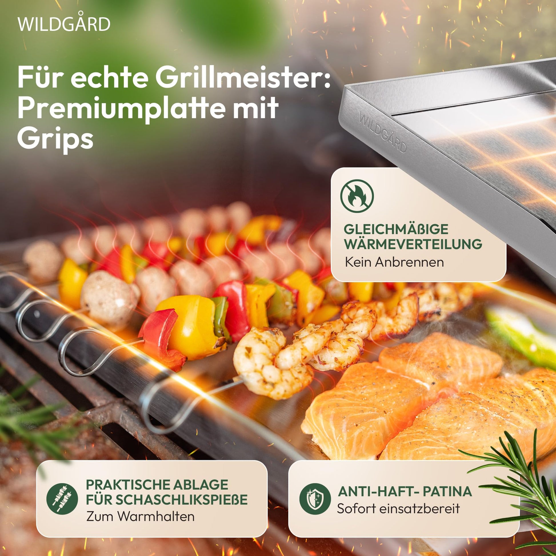 WILDGÅRD Rostfreie Edelstahl Plancha Grillplatte 40x30 cm
