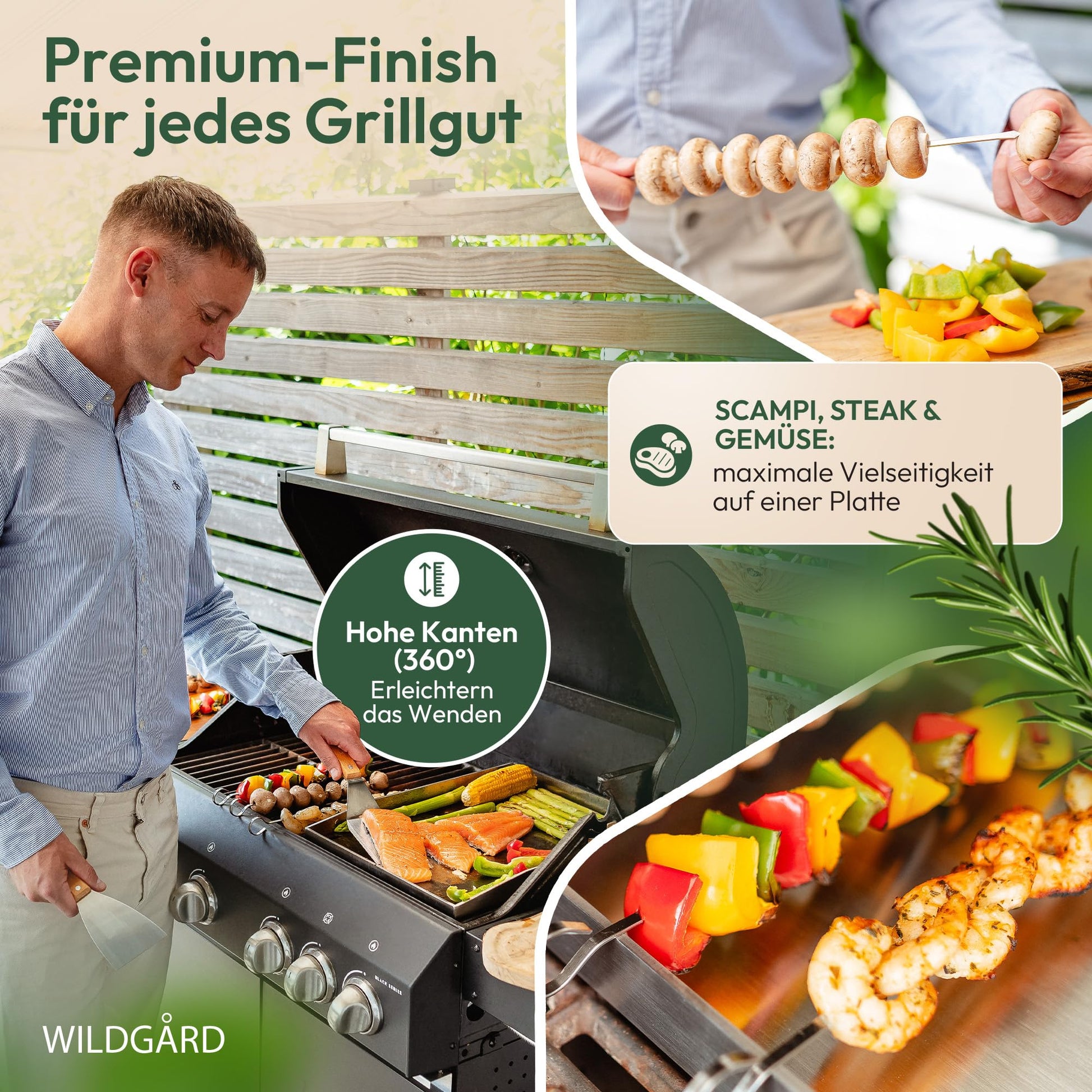 Erstklassige Grillergebnisse: Der dicke Edelstahl sorgt für eine exzellente Wärmespeicherung und eine absolut gleichmässige Hitzeverteilung. Ob zartes Fleisch, knackiges Gemüse oder delikater Fisch – erzielen Sie stets professionelle und schmackhafte Resultate, die auf einem herkömmlichen Rost kaum möglich sind.