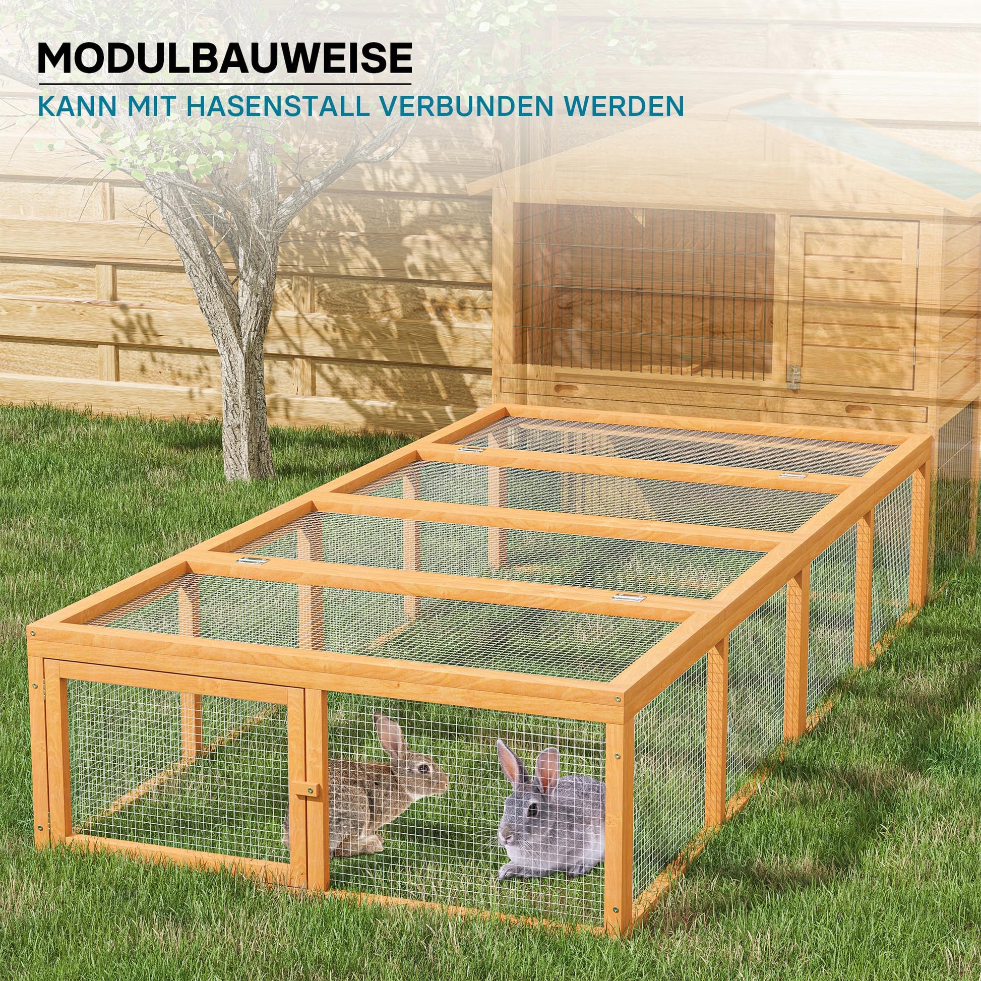 Mit diesem Freilaufgehege schenken Sie Ihren kleinen Freunden ein grosses Stück Lebensqualität und Sicherheit im Grünen.