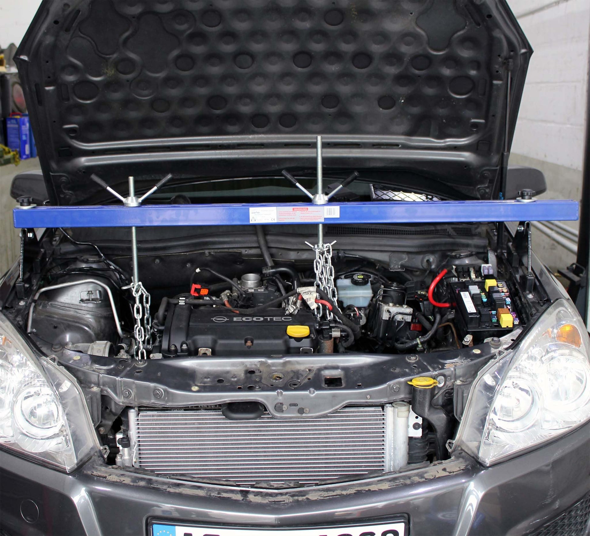 Ein besonderer Vorteil sind die gummierten Auflagefüsse. Diese verhindern zuverlässig Beschädigungen am Lack der Kotflügel und sorgen für einen rutschfesten Halt. Dank der einfachen und schnellen Ein-Personen-Montage ist die Motorbrücke im Handumdrehen einsatzbereit und genauso schnell wieder verstaut, was wertvolle Zeit in der Werkstatt spart.