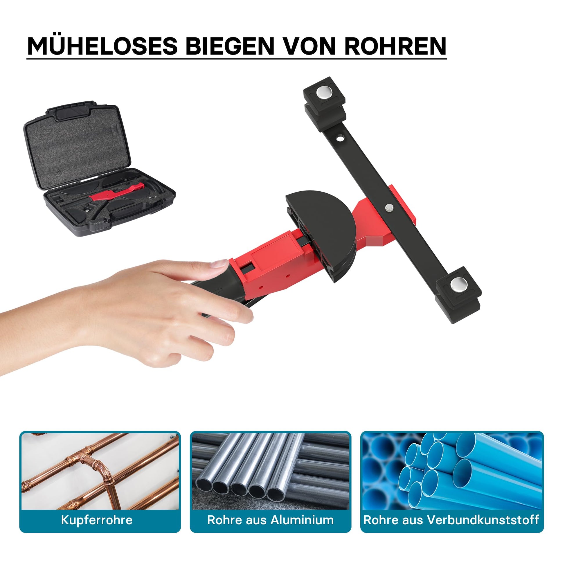 Diese manuelle Rohrbiegemaschine ist das ideale Werkzeug, um Aluminium-, Kupfer- und Kunststoffrohre präzise und mit geringem Kraftaufwand in die gewünschte Form zu bringen. Sie eignet sich hervorragend für eine Vielzahl von Anwendungen in der Werkstatt und bei Montagen.
