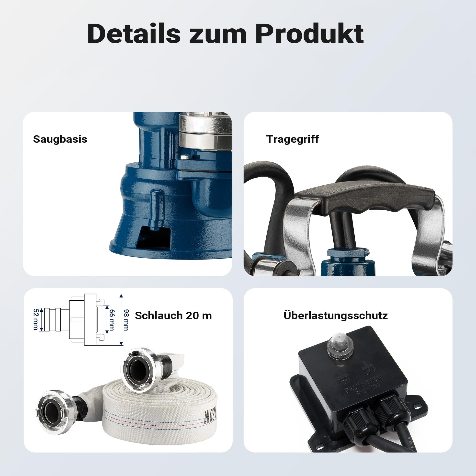 Die Bedienung ist dank des automatischen Schwimmerschalters besonders komfortabel und sicher. Sie müssen den Pumpvorgang nicht ständig überwachen – das Gerät schaltet sich von selbst ab. Da der 20 Meter lange Schlauch bereits mitgeliefert wird, können Sie sofort loslegen, ohne zusätzliches Zubehör kaufen zu müssen.