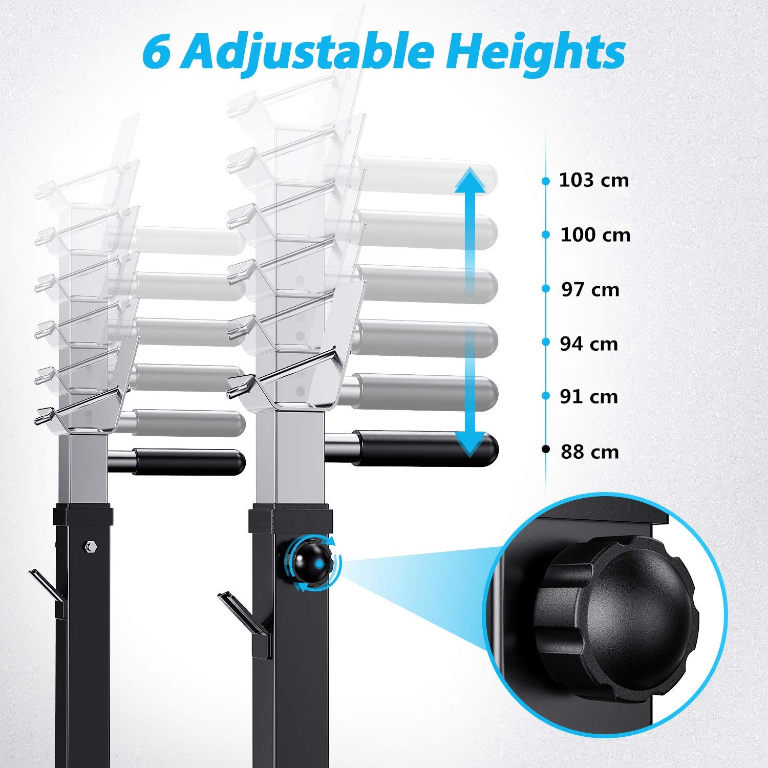 - Sicheres Training: Die Höhenverstellung wird mit stabilen Sicherheitsknöpfen fixiert, die eine höhere Belastbarkeit als herkömmliche Bolzen aufweisen.