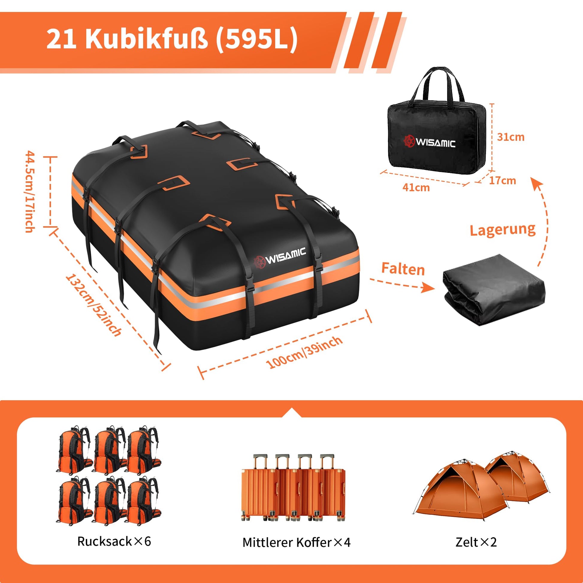 Wisamic faltbare Dachbox für Auto, Van, SUV – 595L, wasserdicht
