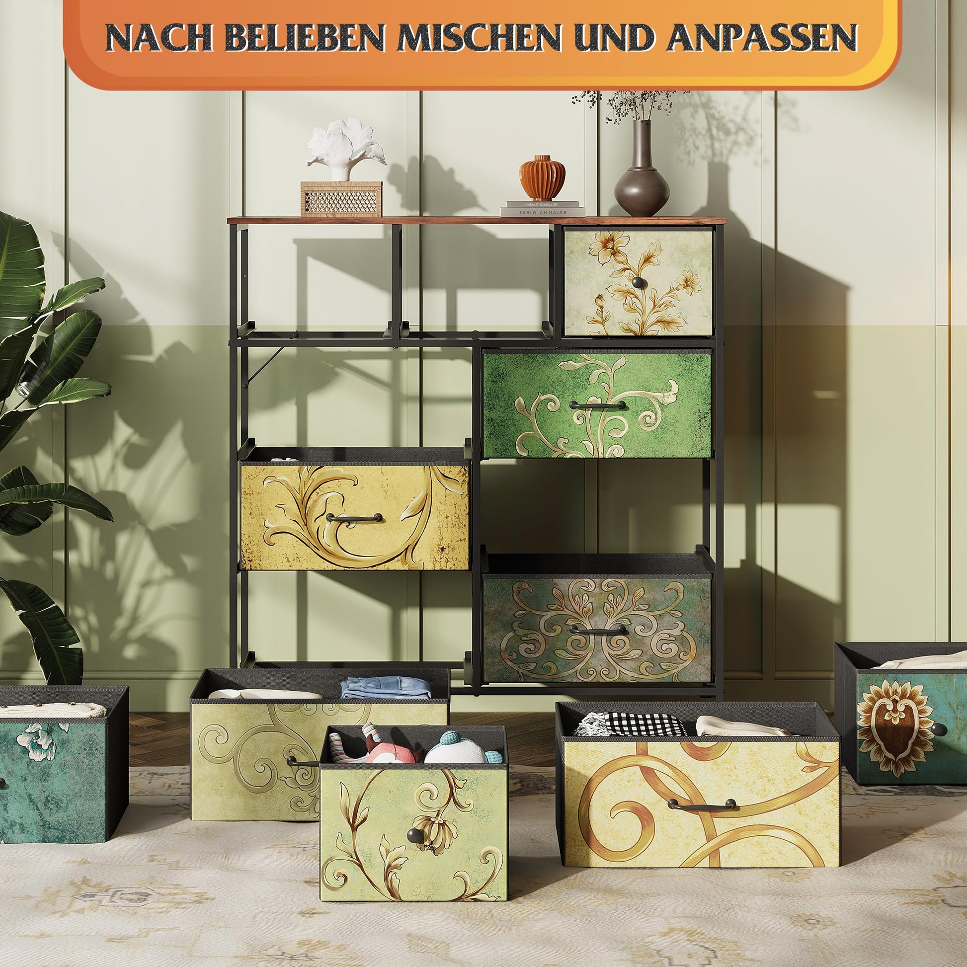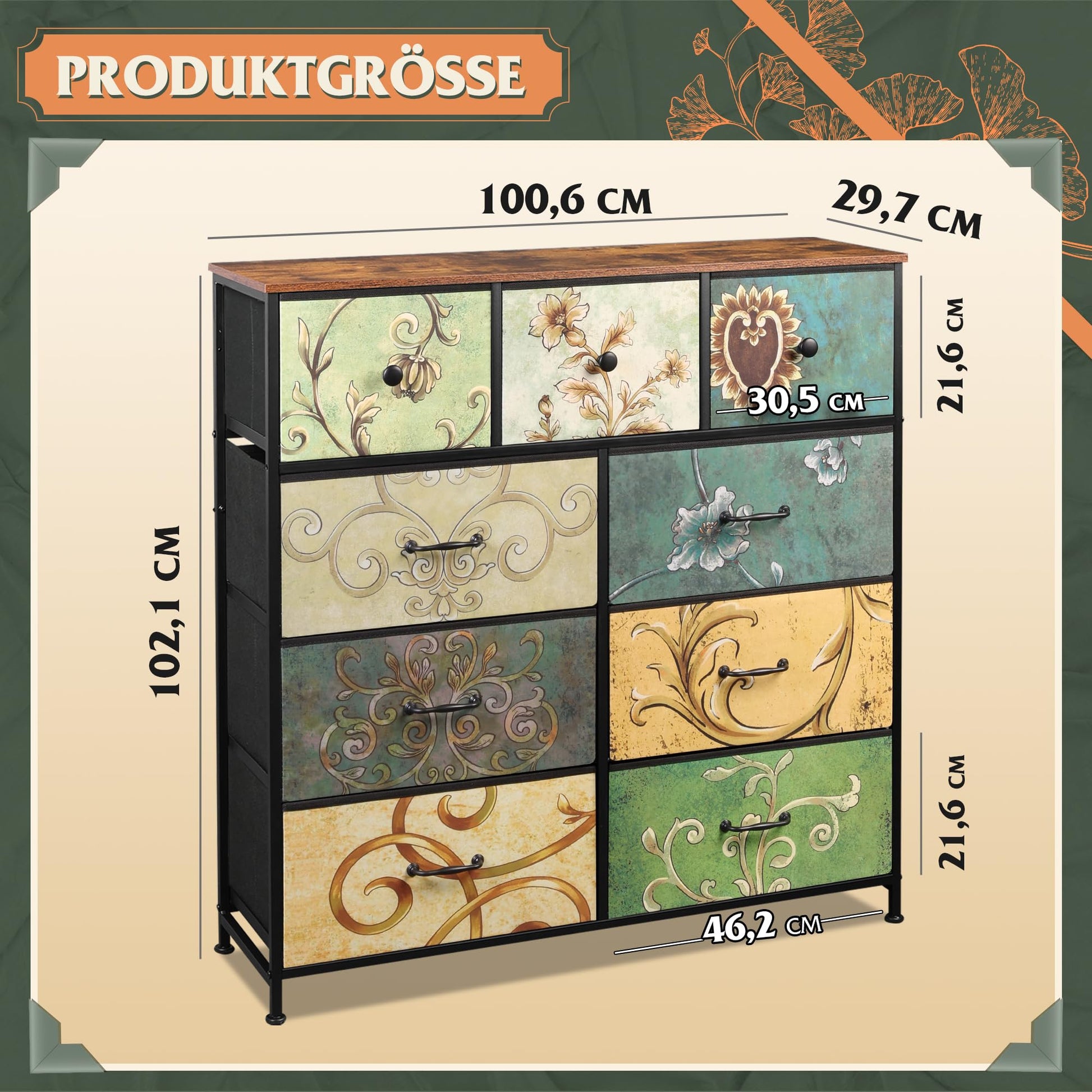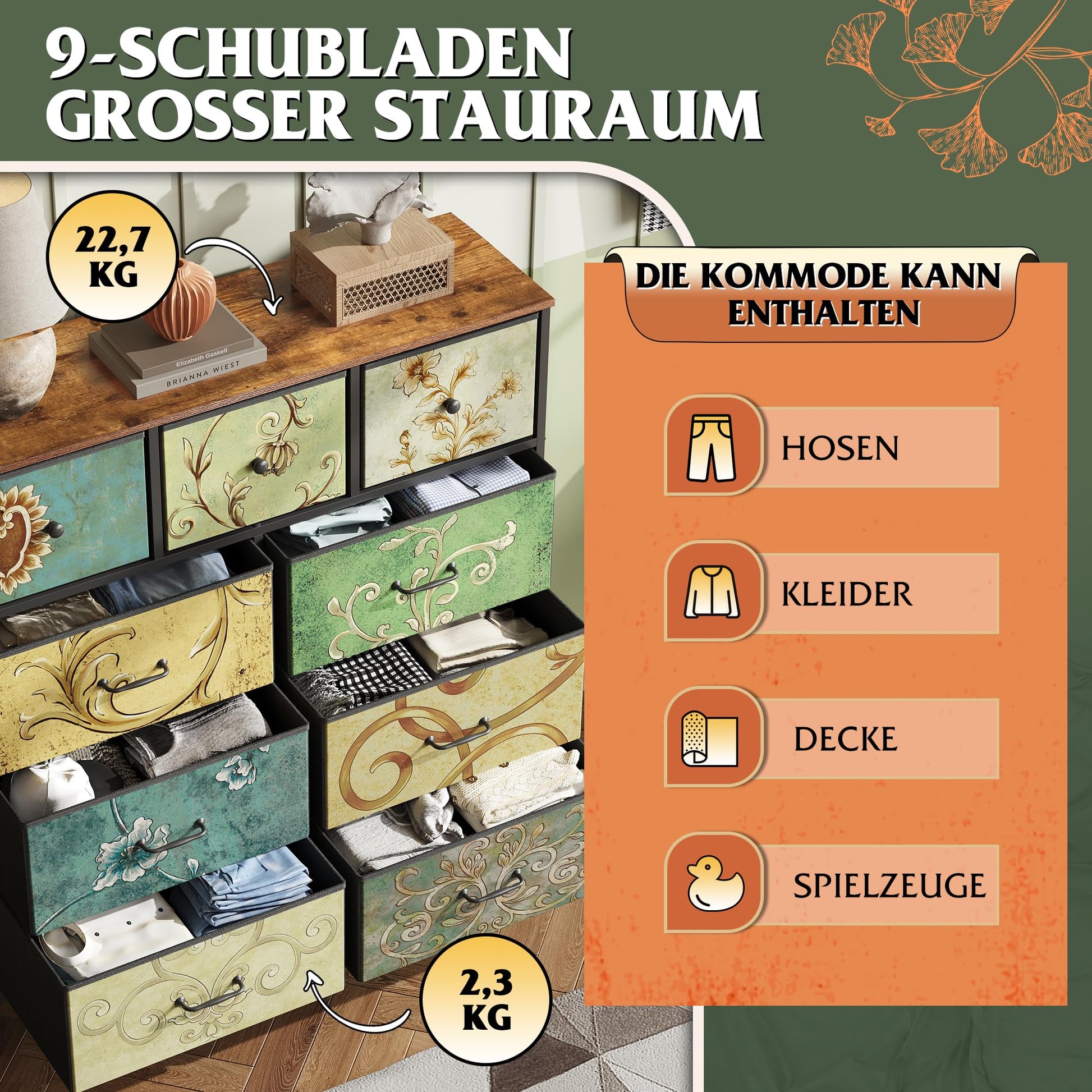 WLIVE Kommode 9 Schubladen aus Stoff – Schlafzimmer, Vintage-Druck