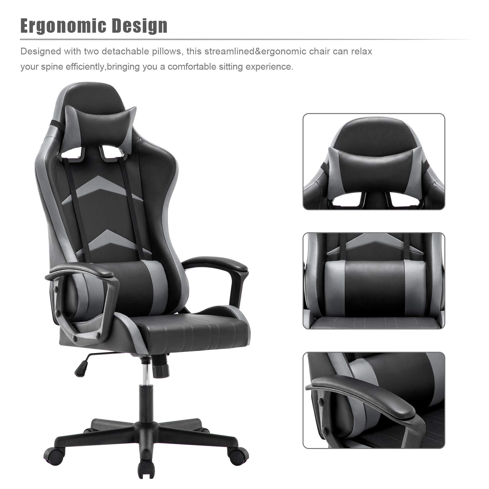 - Flexible Anpassung: Der Stuhl ist um 360° drehbar und mit leichtgängigen Rollen ausgestattet. Das abnehmbare Kopf- und Lendenwirbelkissen lässt sich individuell positionieren.