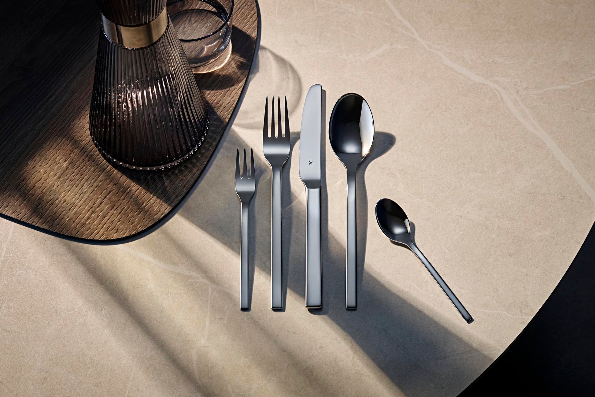 Reduziertes, elegantes Design: Die schlichte und schnörkellose Gestaltung trifft den modernen Zeitgeist. Die Konzentration auf das Wesentliche macht dieses Besteck zu einem bestechenden Highlight auf jeder gedeckten Tafel.