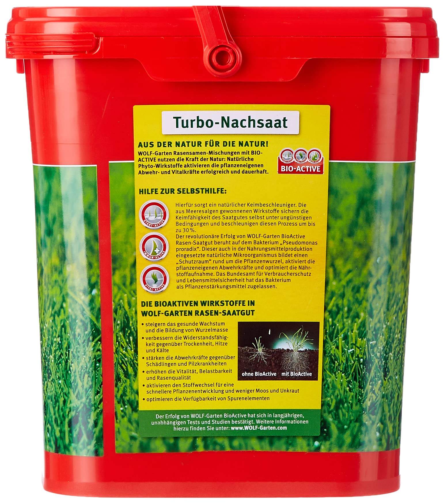 - Extrem schnelle Keimung: Dank der Turbo-Nachsaat keimt das Saatgut um 30 % schneller.