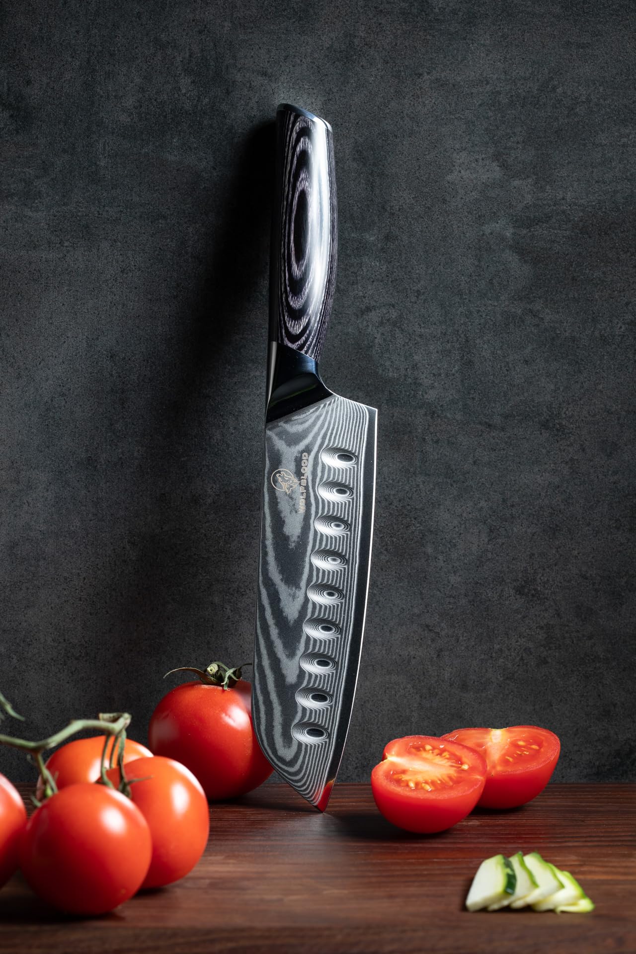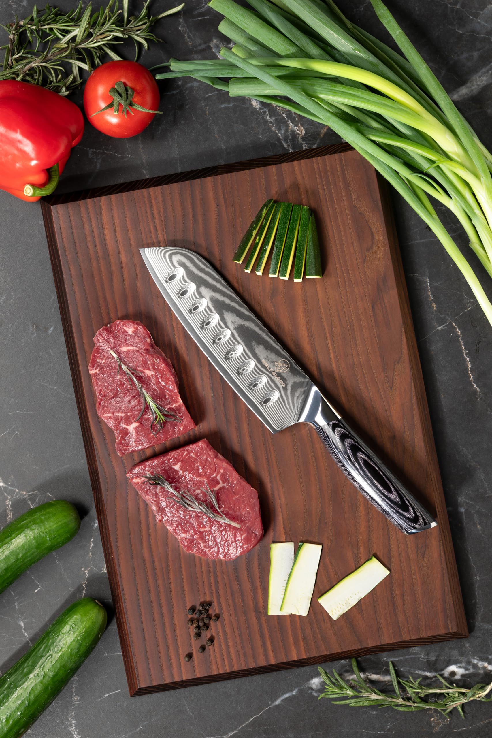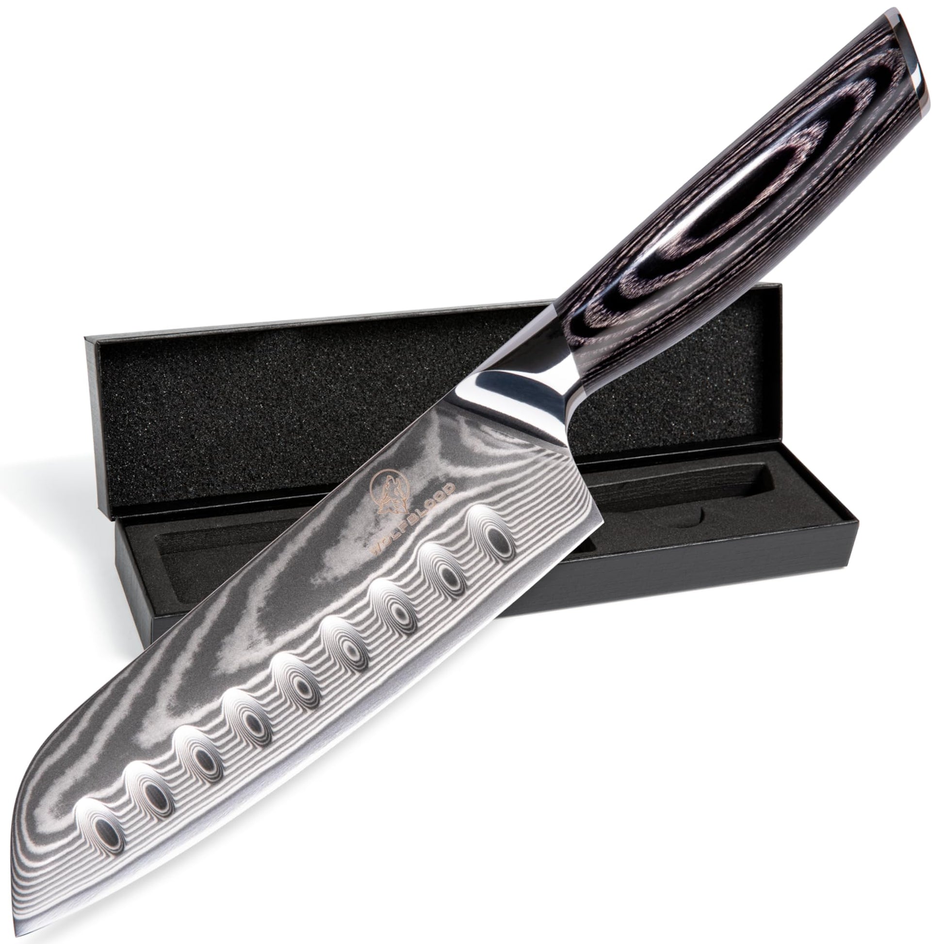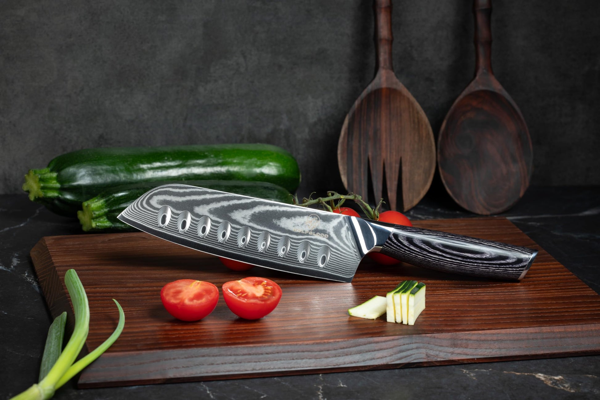 Wolfblood PRO Damast Santoku Messer XL - Profi Küchenmesser