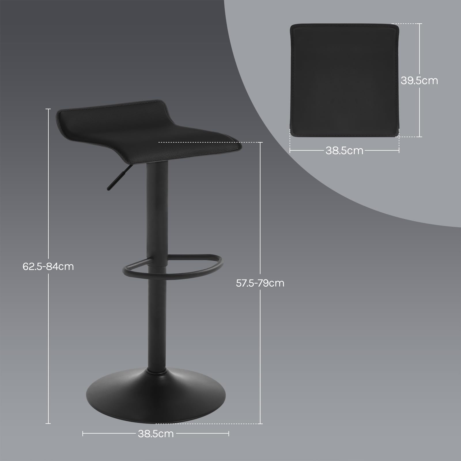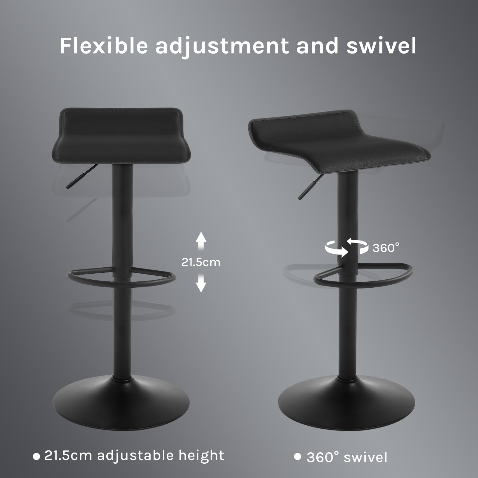 Die Sitzhöhe lässt sich stufenlos zwischen 57,5 cm und 79 cm verstellen. Dadurch passen die Hocker perfekt zu den meisten Standard-Küchentheken und höheren Bartresen und können ideal an unterschiedliche Körpergrössen angepasst werden.