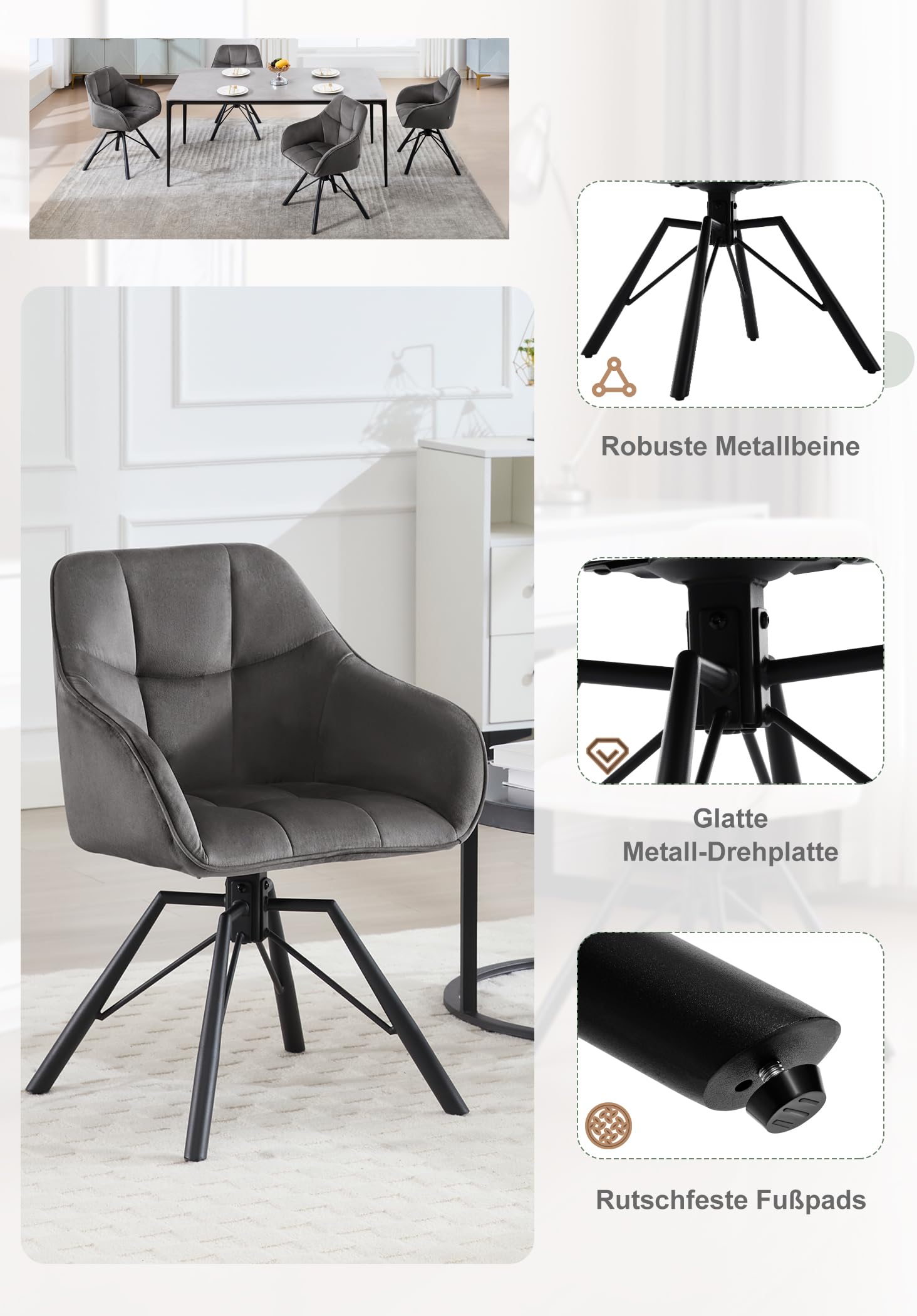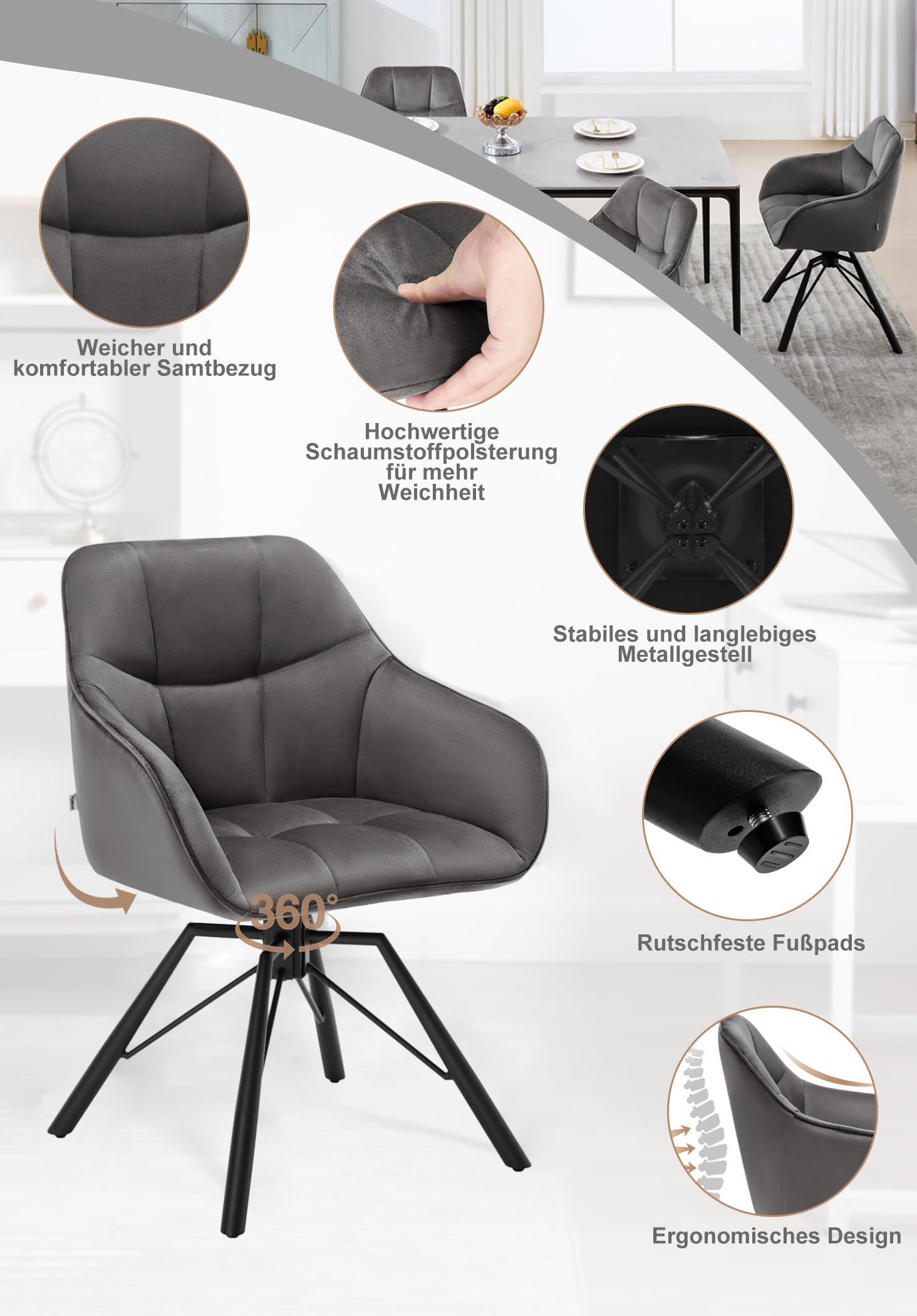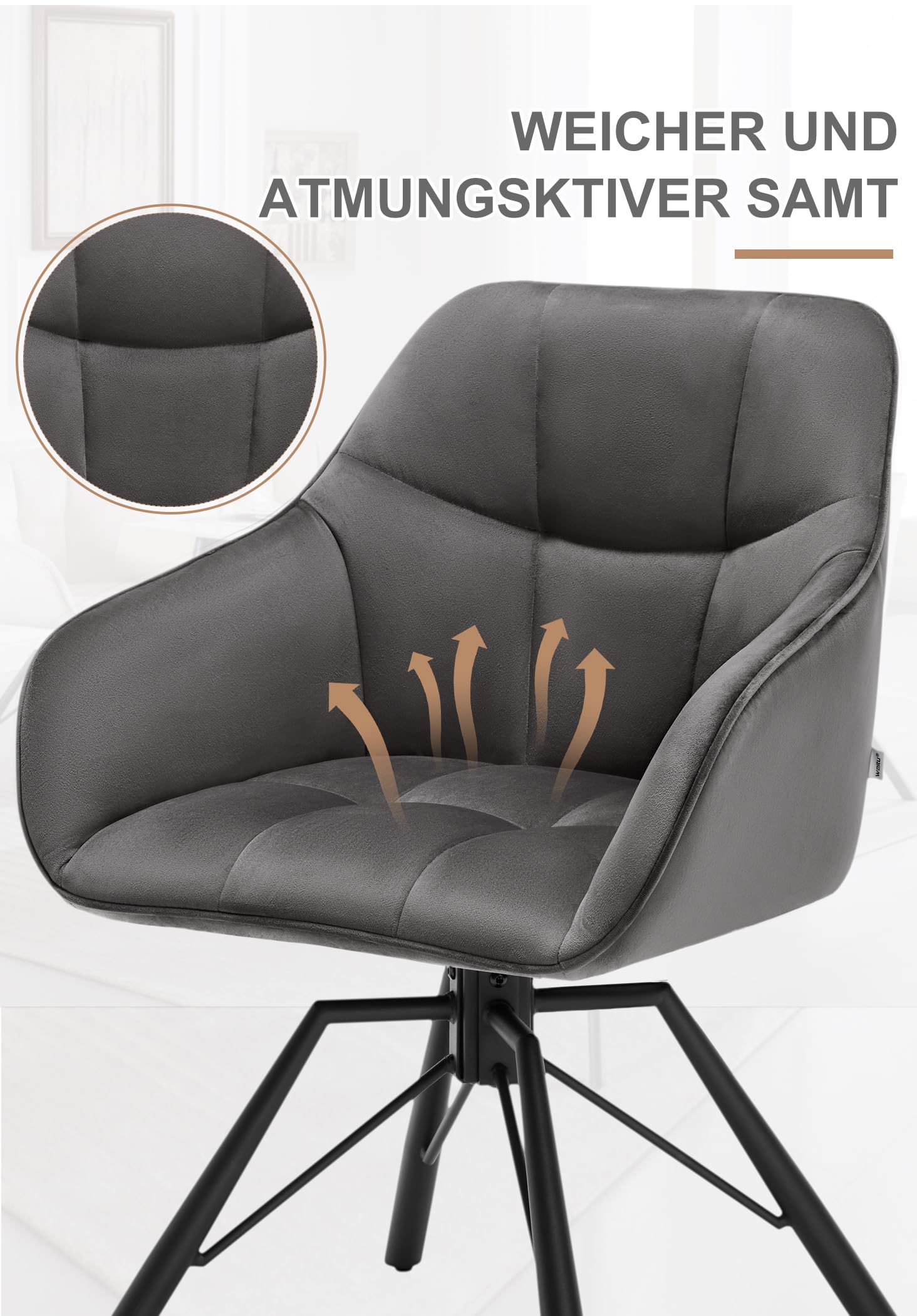 WOLTU Esszimmerstühle drehbar 2er Set - Samt dunkelgrau