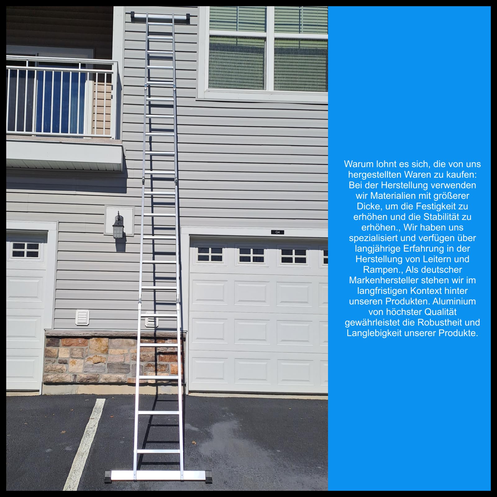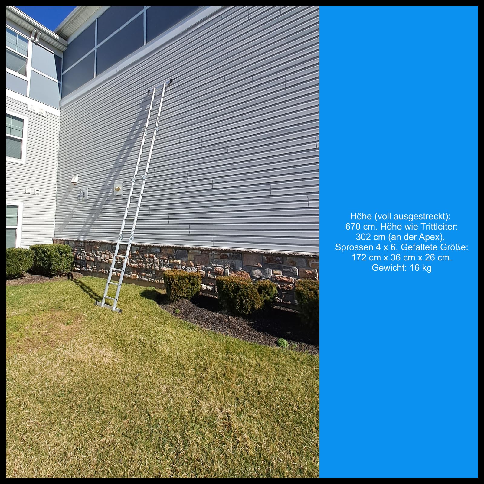- Maximale Höhe: Als Anlegeleiter vollständig auf 6.70 m ausklappbar.