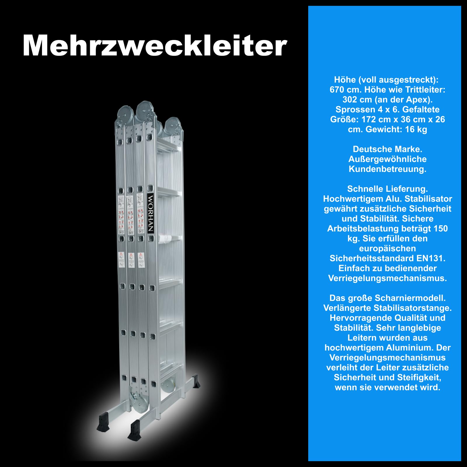 WORHAN Mehrzweckleiter KS6.7 - Anlege Stehleiter 6.7m