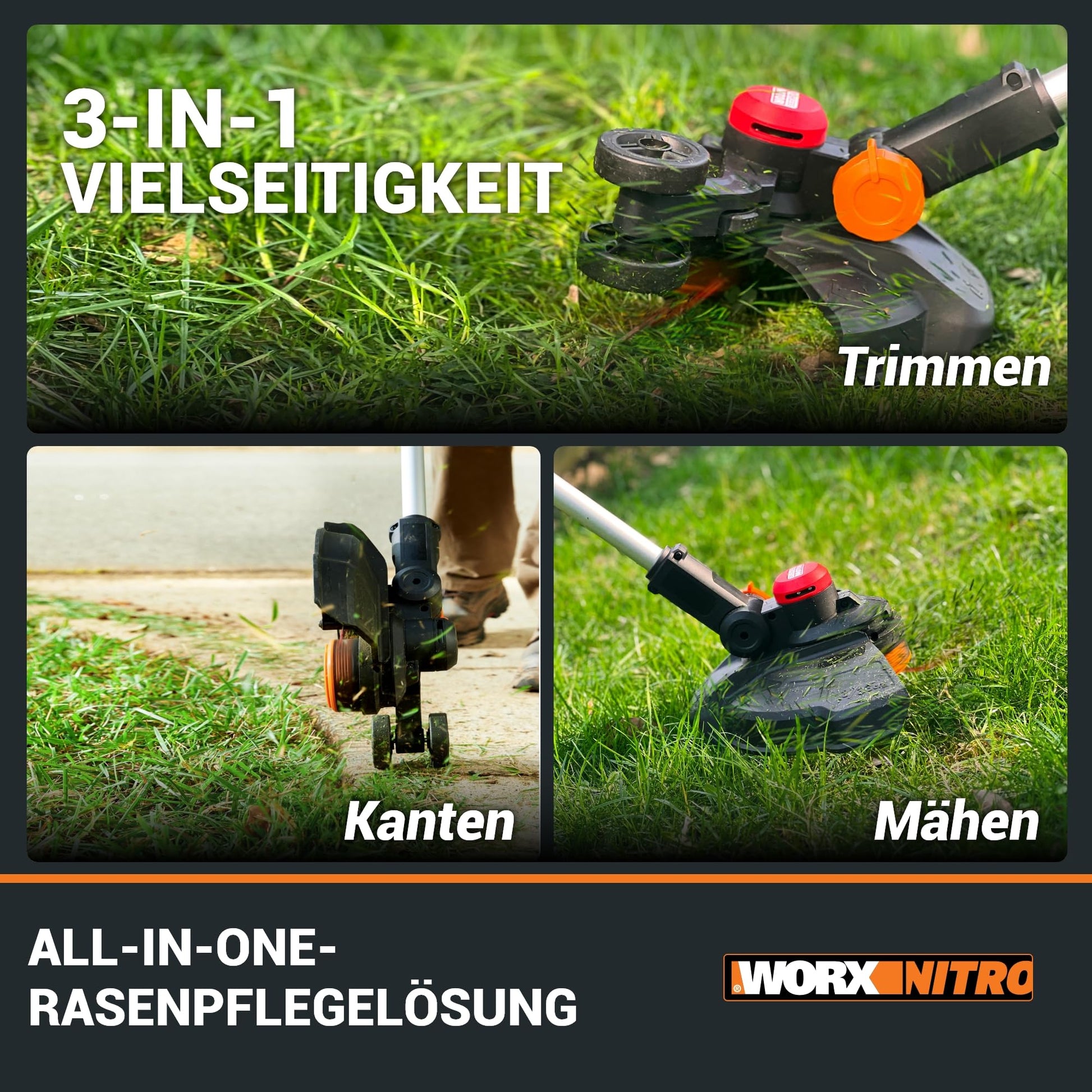 Der WORX Nitro WG173E.9 ist ein vielseitiges und leistungsstarkes Gartengerät, das Ihnen die Pflege von Rasenkanten und schwer zugänglichen Stellen massgeblich erleichtert. Er kombiniert die Funktionen von drei Geräten in einem leichten und ergonomischen Design.