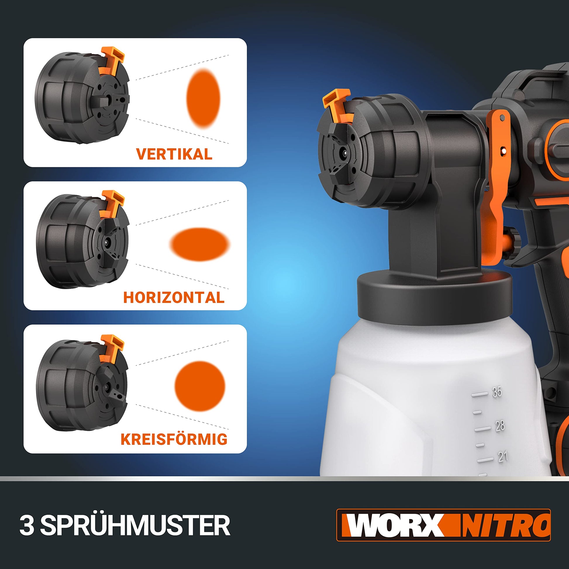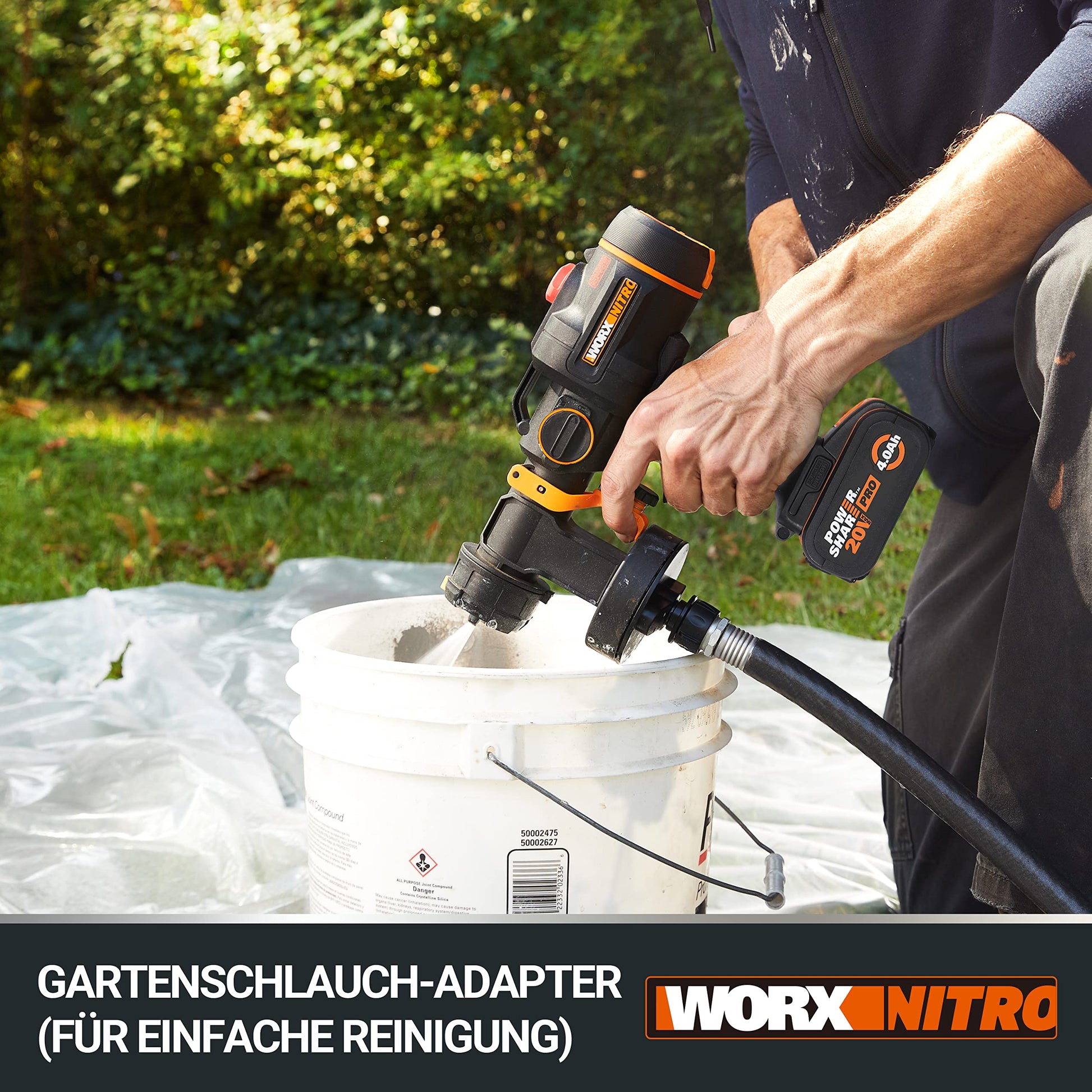 Mit dem WORX Nitro Akku-Farbsprühsystem werden Malerarbeiten so einfach und mobil wie nie zuvor. Erzielen Sie professionelle Resultate bei einer Vielzahl von Projekten, ganz ohne den Aufwand von Pinsel und Roller und ohne lästiges Kabelgewirr.