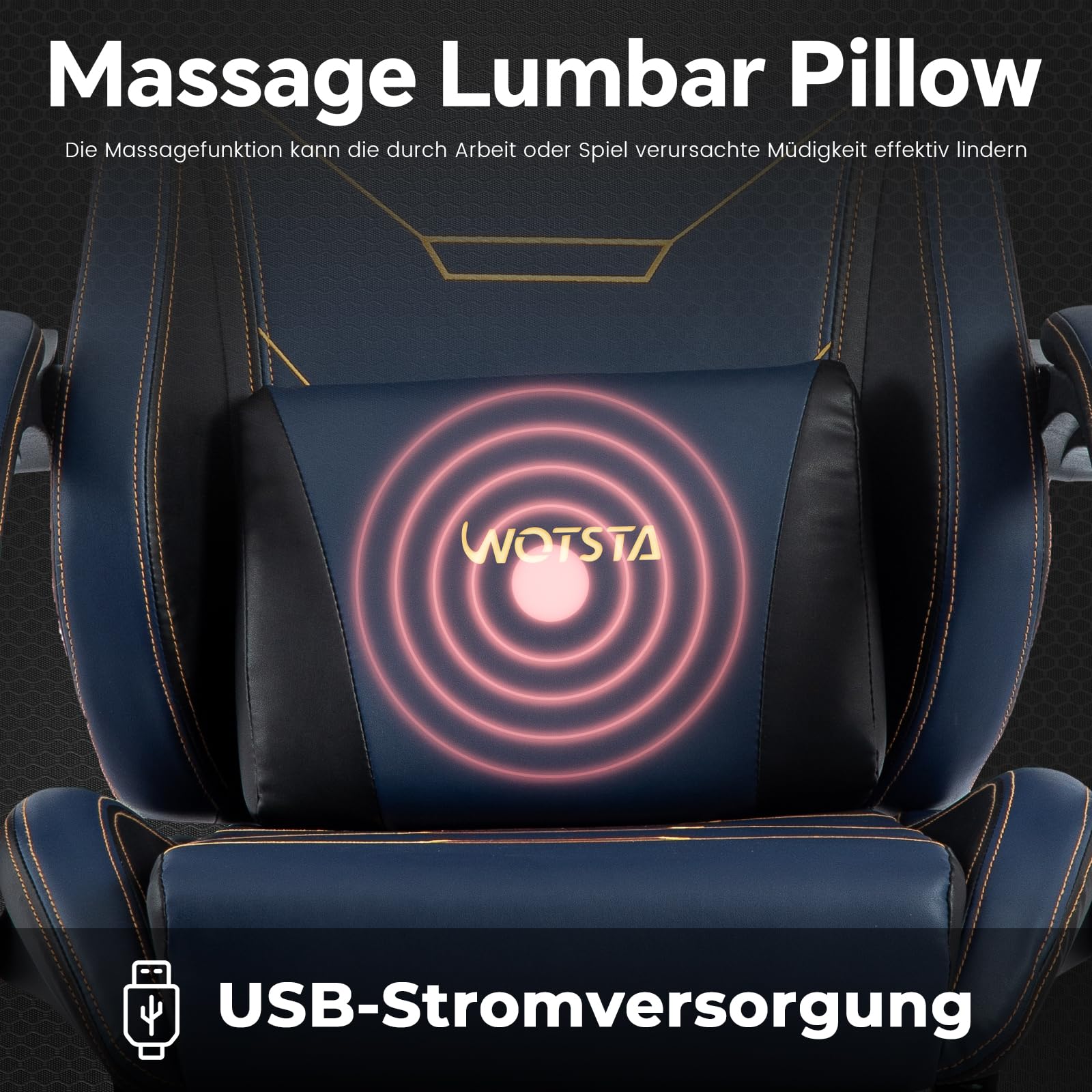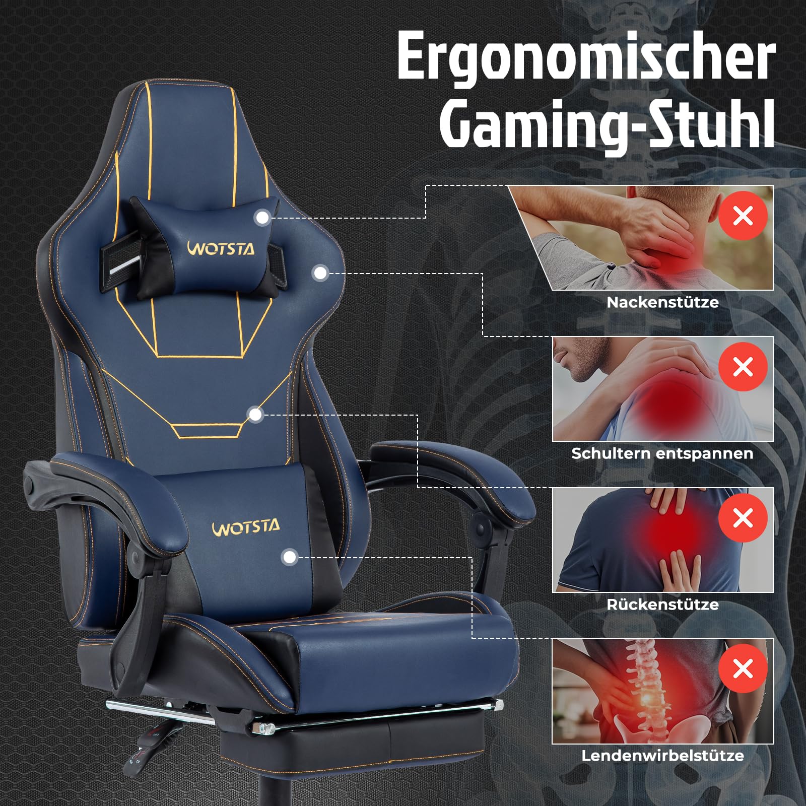 WOTSTA Gaming Stuhl Ergonomisch mit Fussstütze - Blau