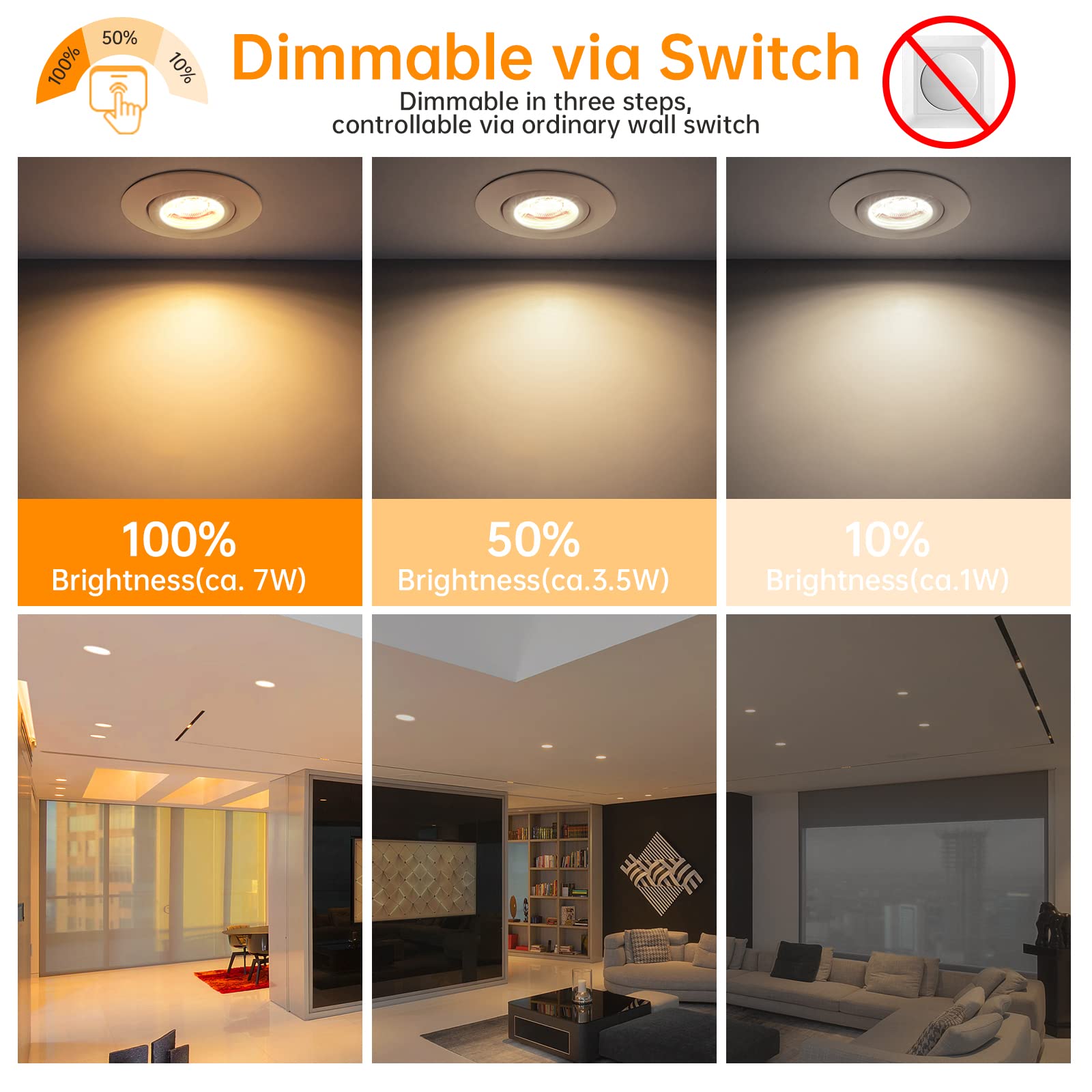 - 3-stufig dimmbar: Regeln Sie die Helligkeit (100%, 50%, 10%) komfortabel über Ihren bestehenden Wandschalter – ganz ohne zusätzlichen Dimmer.