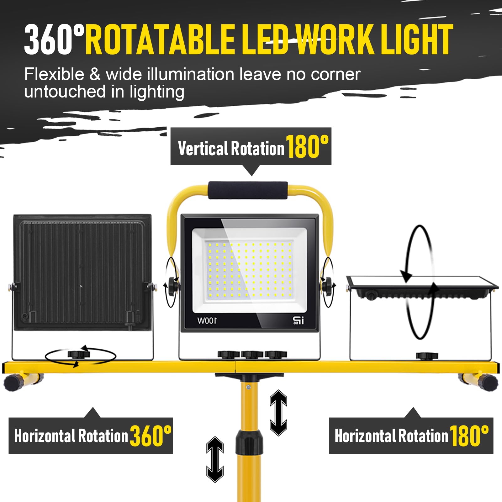 Arbeiten Sie auch bei schlechten Lichtverhältnissen oder in der Nacht mit tagheller Ausleuchtung. Dank des voll schwenkbaren Leuchtkörpers und des höhenverstellbaren Stativs richten Sie das Licht präzise dorthin, wo Sie es benötigen, ohne das gesamte Gerät verschieben zu müssen. Die stabile Konstruktion gewährleistet einen sicheren Stand und eine lange Lebensdauer, selbst unter den rauen Bedingungen einer Baustelle. Die effiziente Wärmeableitung auf der Rückseite sichert zudem die Leistungsfähigkeit der 108 verbauten LED-Chips.
