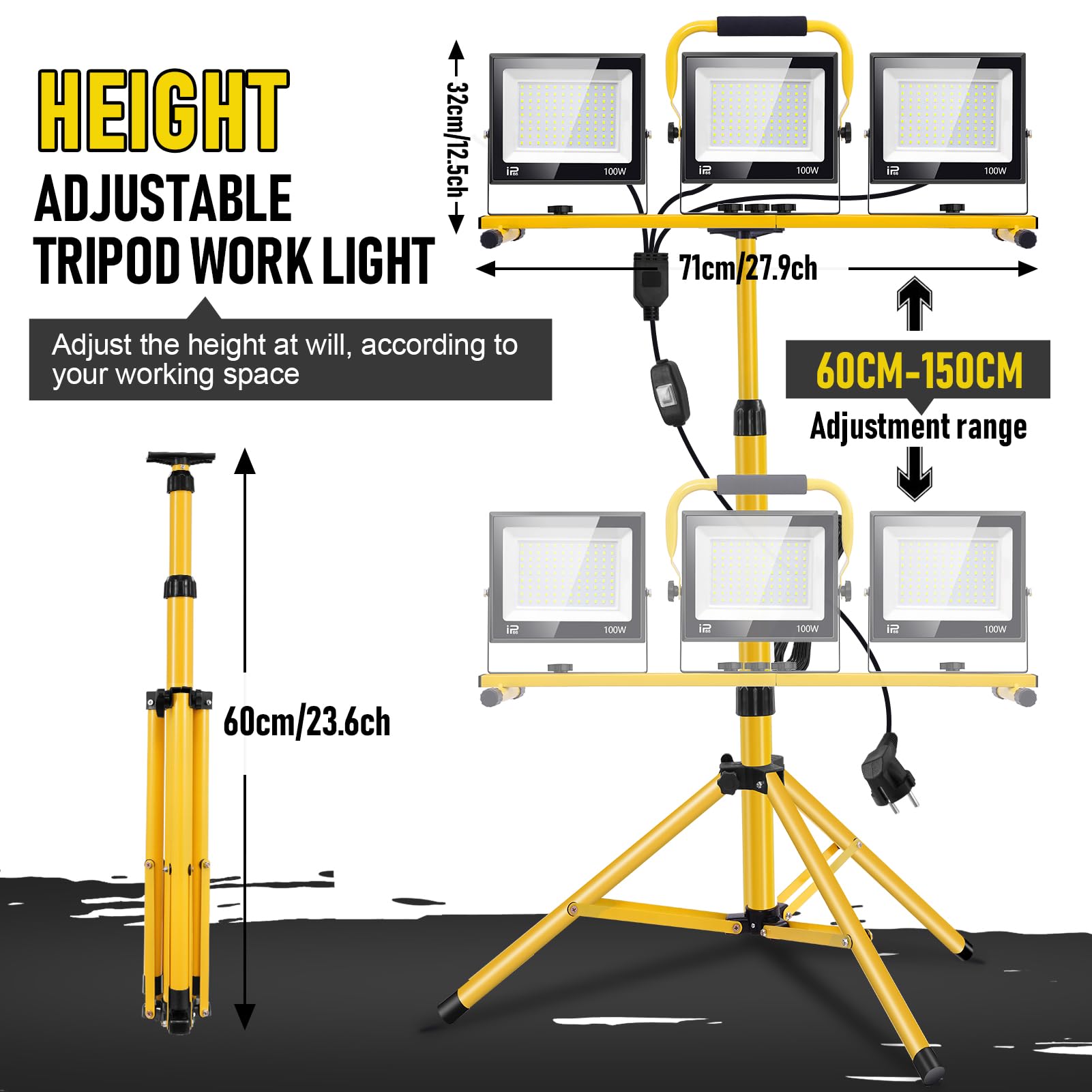 Maximale Flexibilität: Das Stativ ist stufenlos von 60 cm bis 150 cm höhenverstellbar. Der Leuchtkörper selbst lässt sich werkzeuglos um 360° drehen und 180° neigen, sodass Sie das Licht präzise auf Ihren Arbeitsbereich richten können, ohne das ganze Gerät zu bewegen.