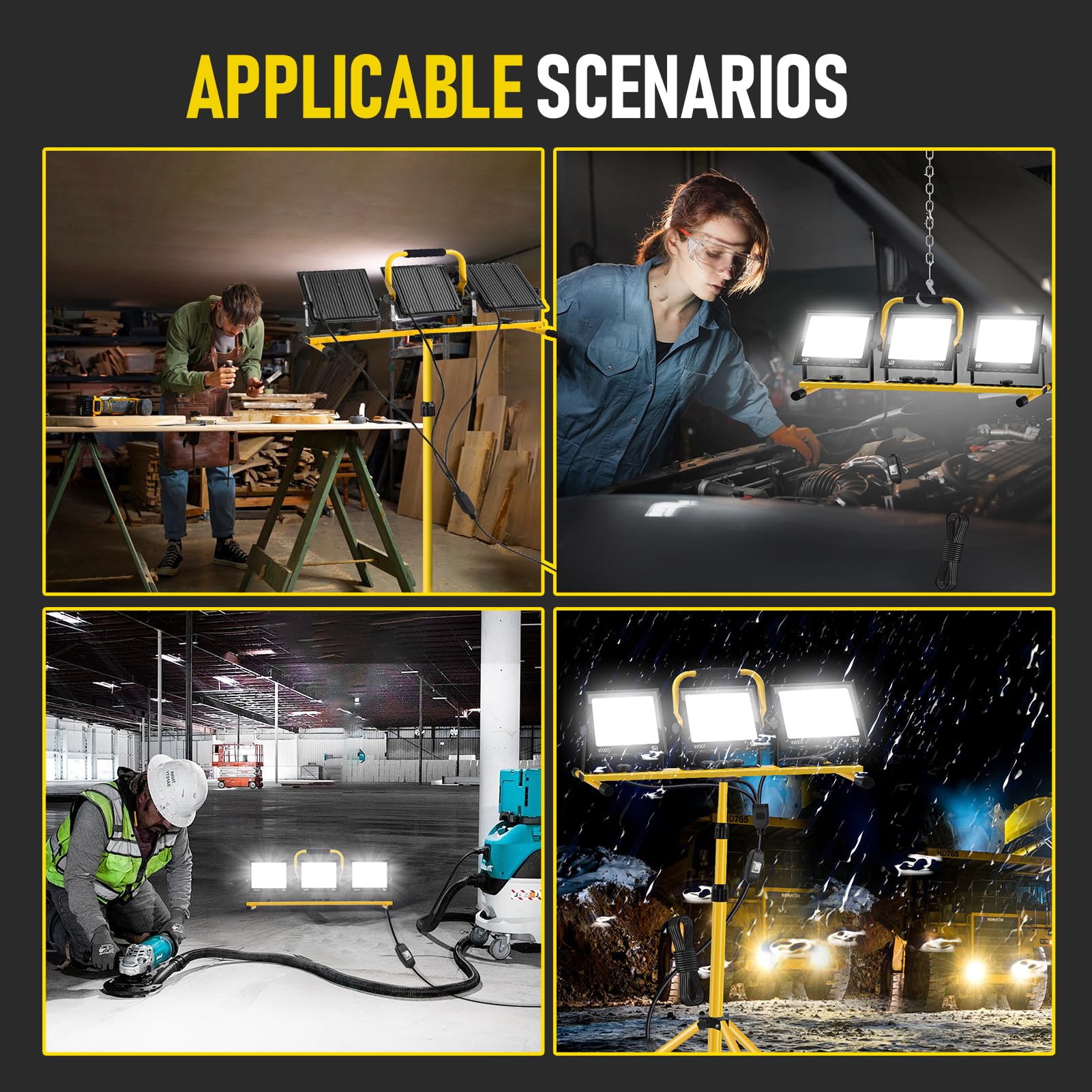 Der Strahler bietet mit 300 Watt Leistung eine enorme Leuchtkraft von 30.000 Lumen. Die Farbtemperatur von 6500 Kelvin erzeugt ein klares, kaltweisses und taghelles Licht, das ideal für detailgenaues Arbeiten in Werkstätten oder auf Baustellen ist.
