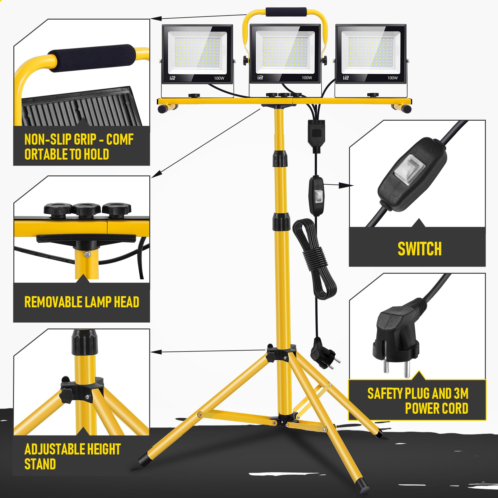wowspeed LED Baustrahler 300W mit Stativ - Arbeitsleuchte