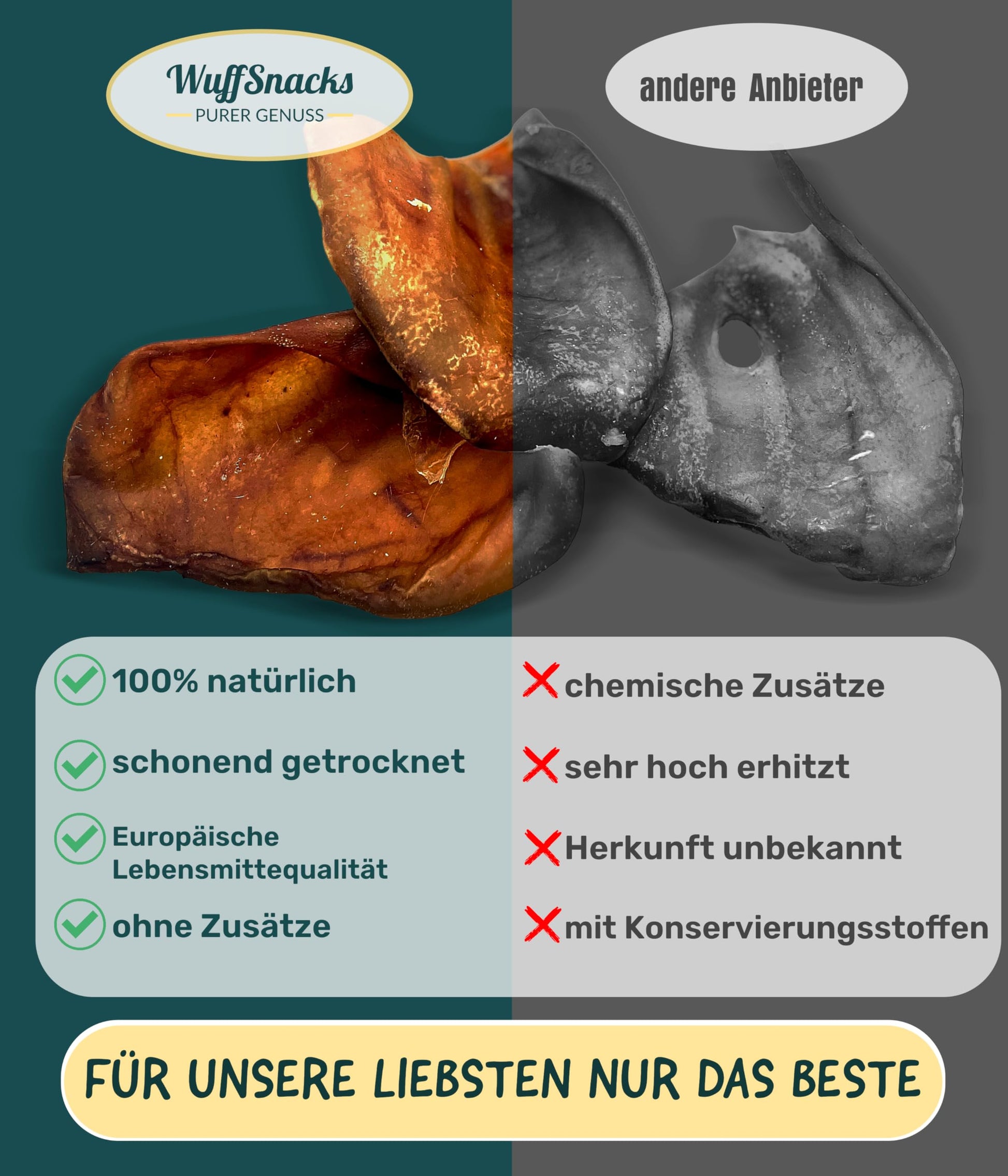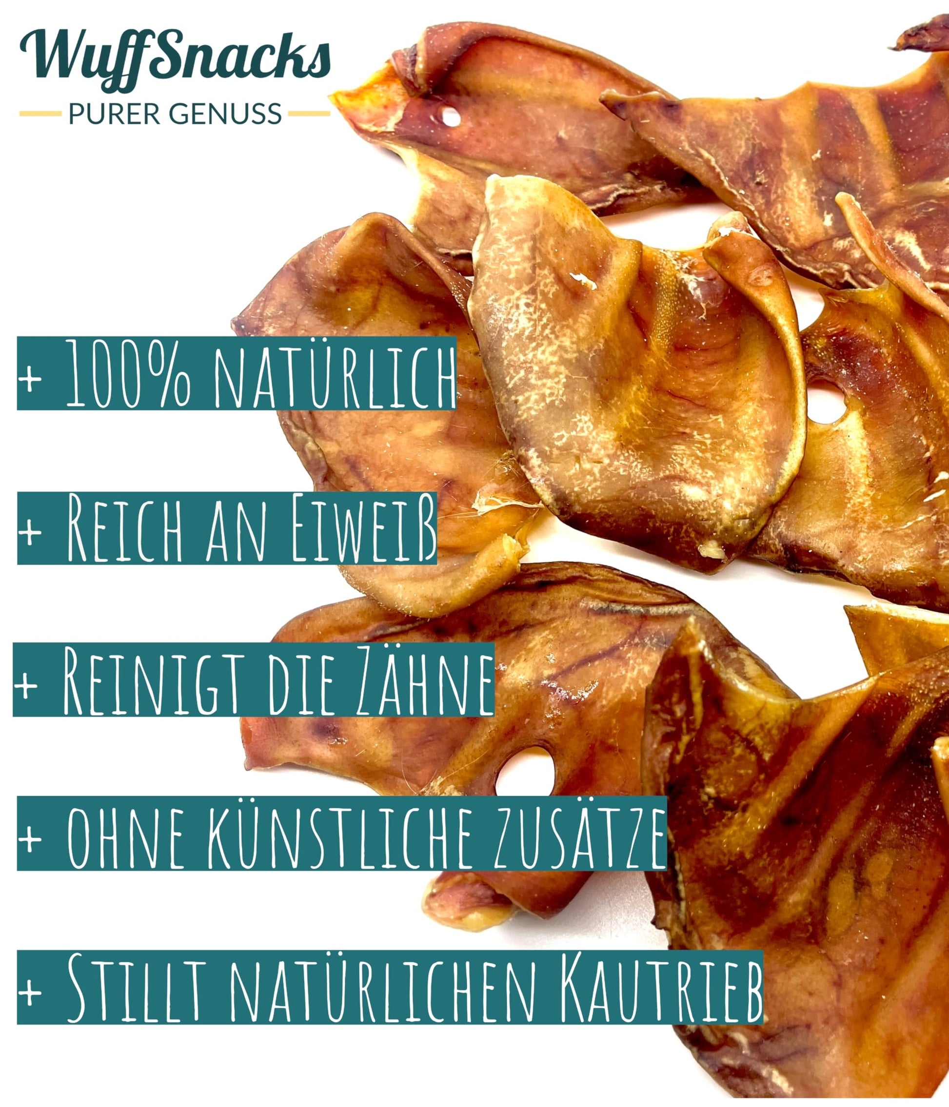 WuffSnacks Getrocknete Schweineohren für Hunde – 50 Stk.