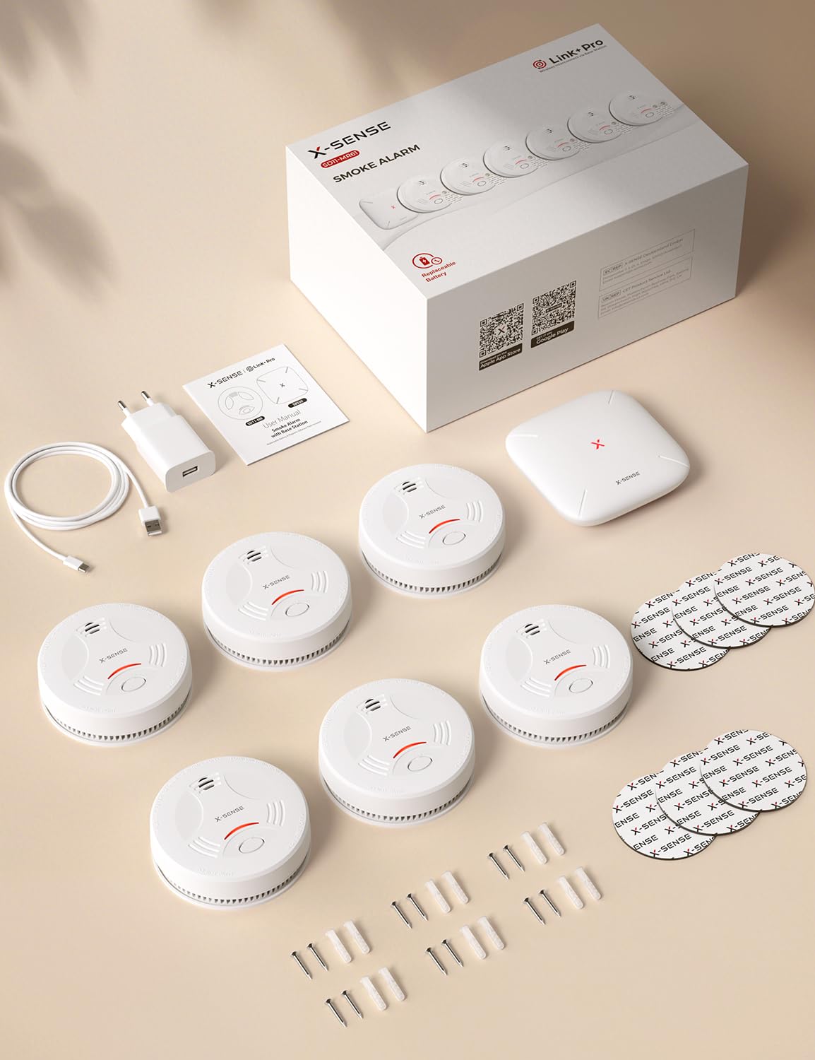 Dieses Set aus sechs intelligenten und funkvernetzten Rauchmeldern von X-Sense bietet eine moderne und umfassende Sicherheitslösung für Ihr Zuhause. In Kombination mit der Basisstation sind Sie jederzeit und überall über potenzielle Gefahren informiert.