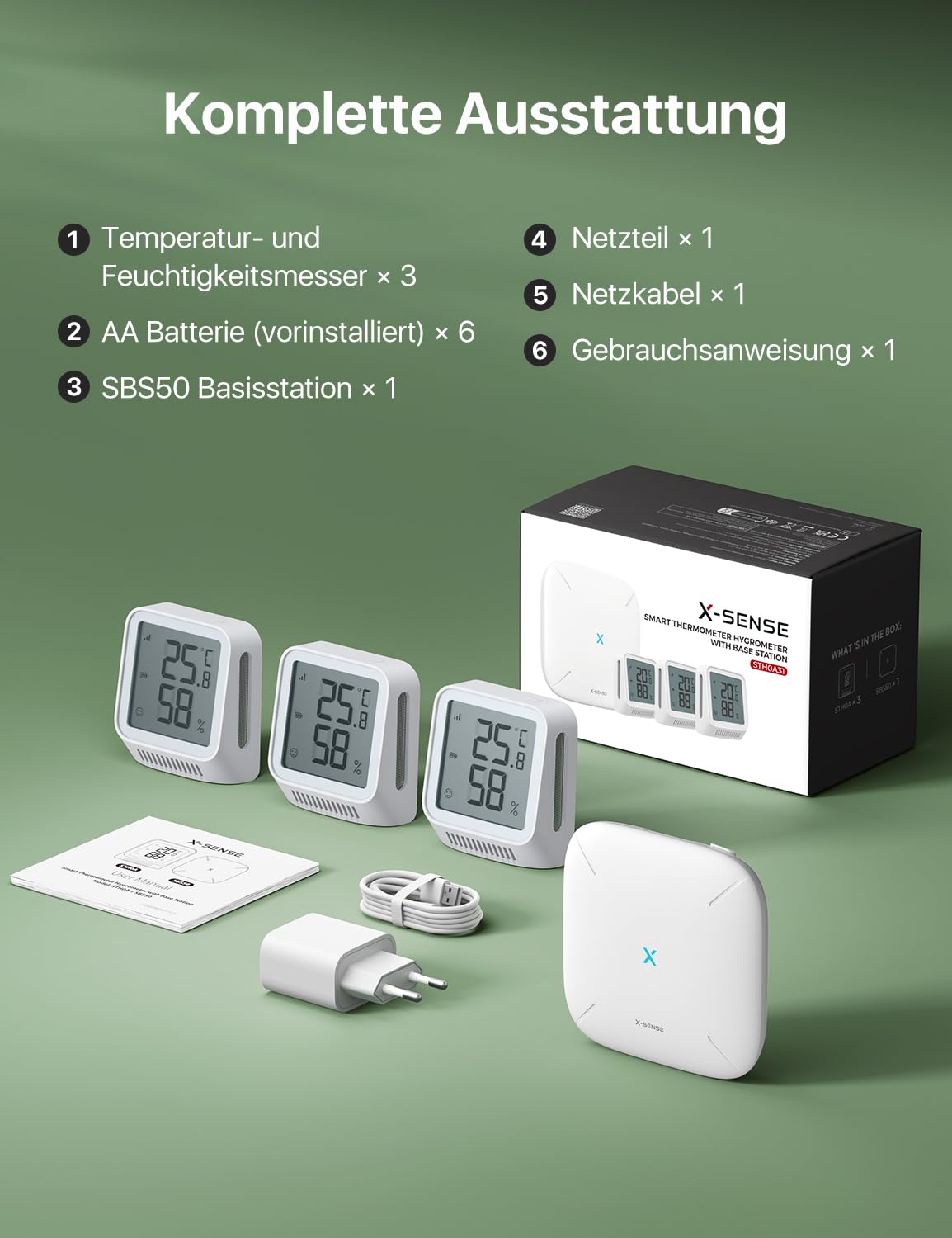 X-sense SBS50 WLAN Thermometer Hygrometer Datenlogger – 3 Sensoren