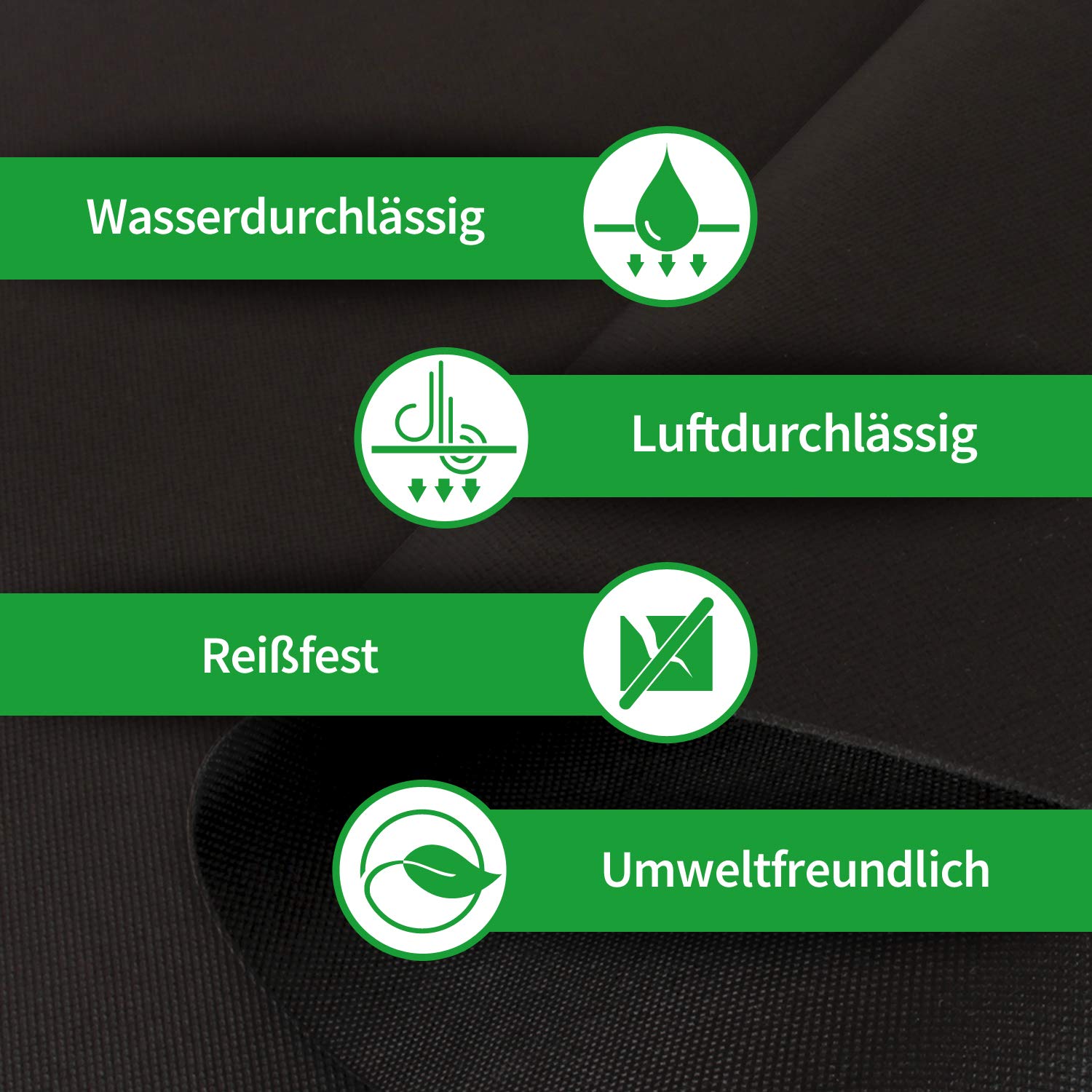 - Wasser- & luftdurchlässig: Die innovative Struktur des Vlieses lässt Wasser, Luft und Nährstoffe zum Boden durchdringen, blockiert jedoch zuverlässig das Wachstum von Unkraut von unten.